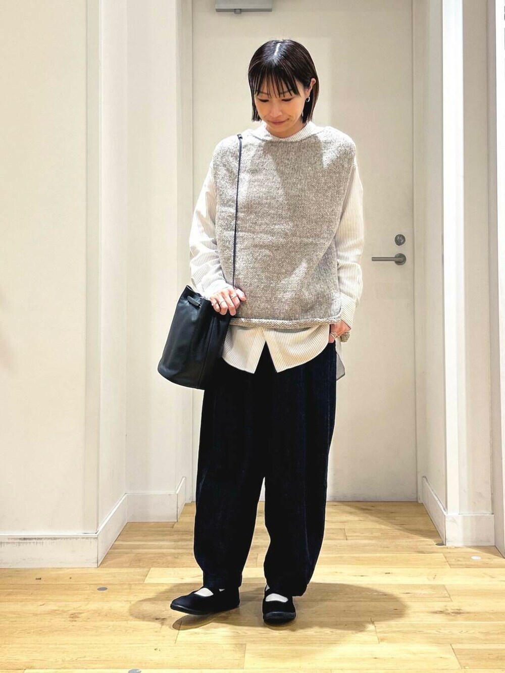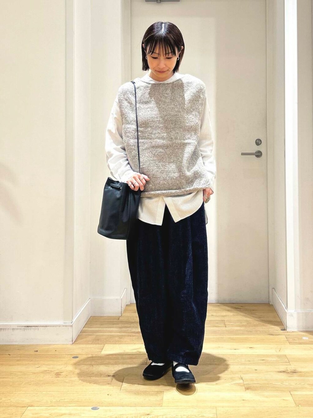 ベストは、程よくゆとりのあるサイズ感なのでどんなアイテムとも合わせやすいですよ!