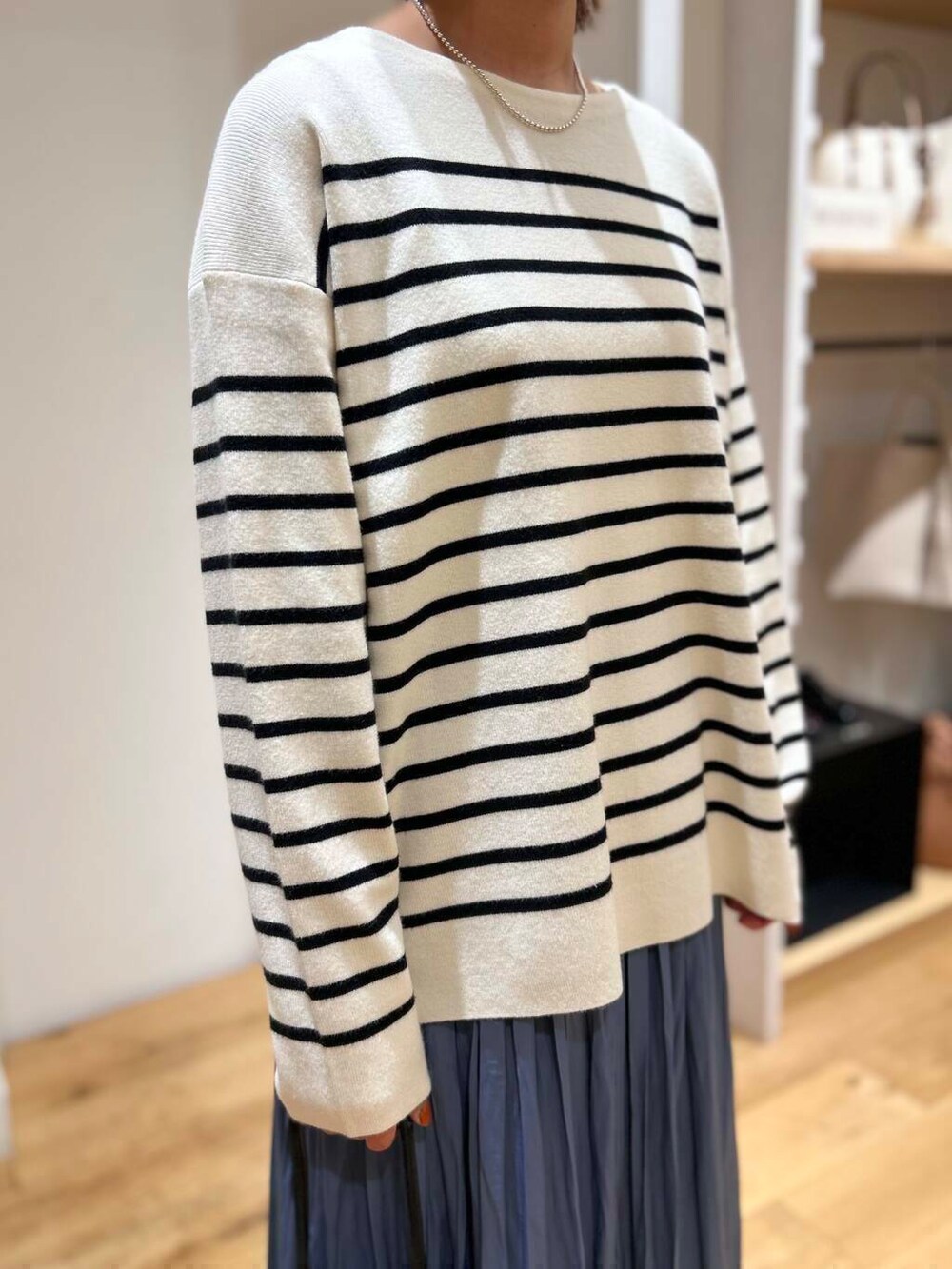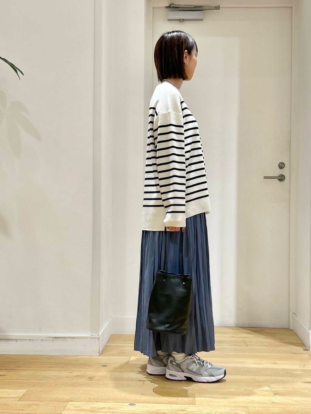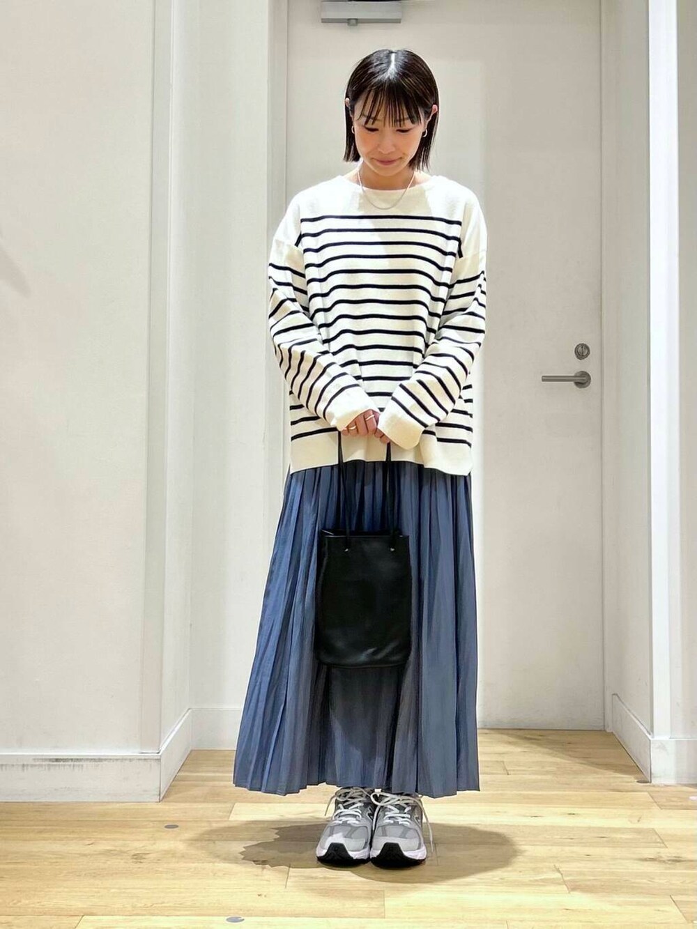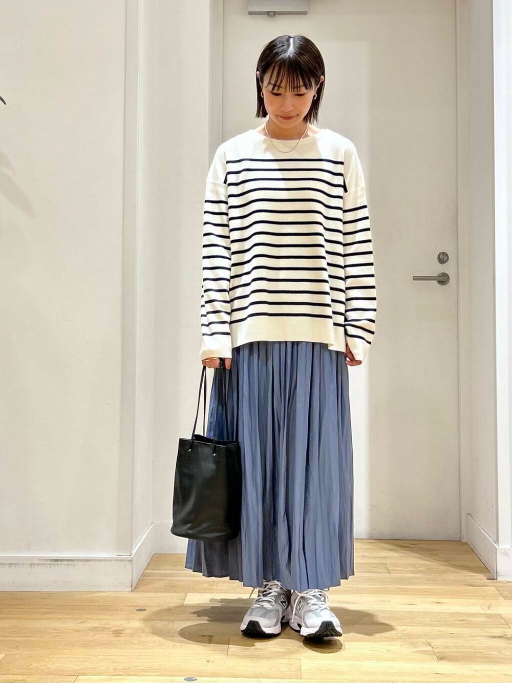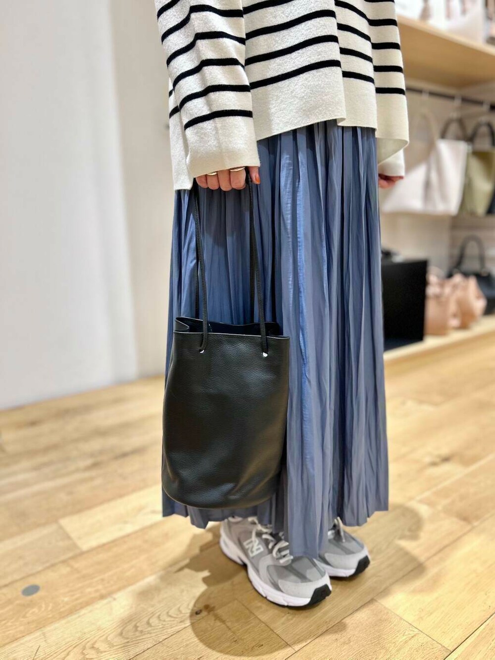 合わせたロングスカートは、少し光沢と落ち感のある素材でスッキリと綺麗にも見せてくれます!