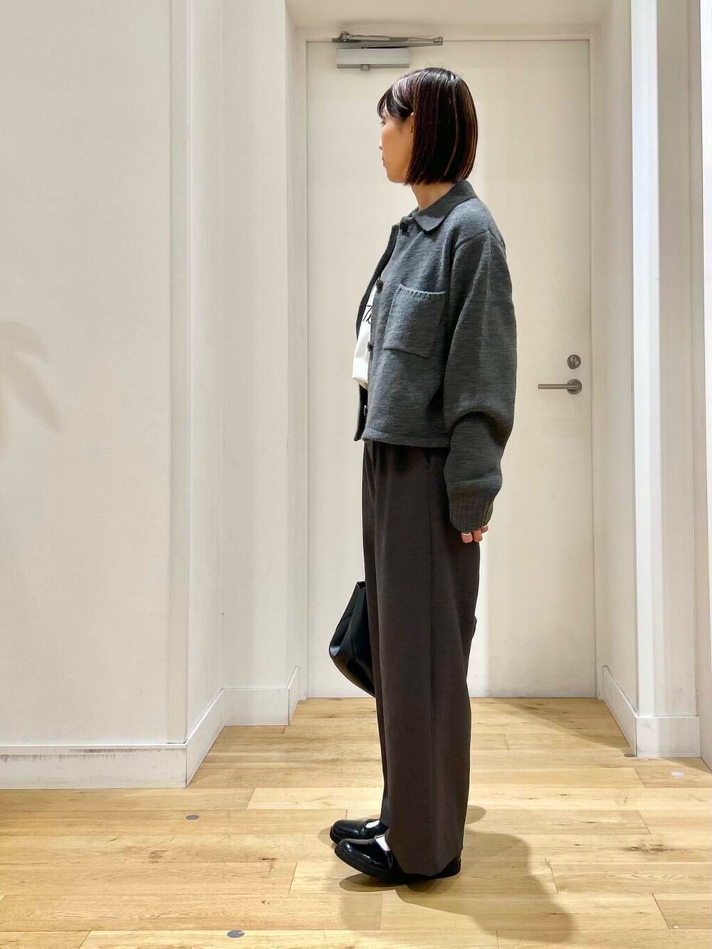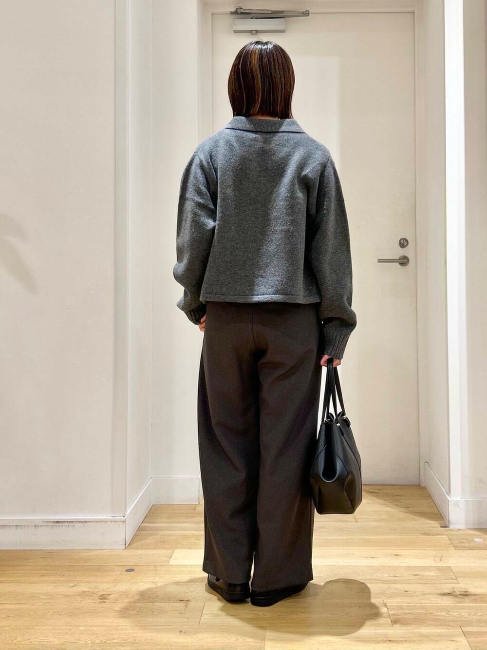 衿付きのニットは、少し肉厚のしっかりした生地感なので季節の変わり目のアウター代わりにピッタリです!