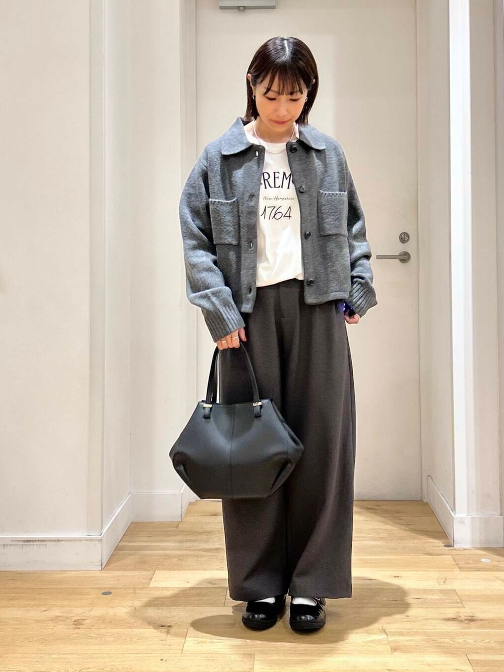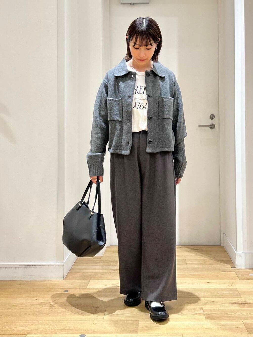 パンツは、ワイドシルエットですが、落ち感のある滑らかな素材でキレイなシルエットで着用できますよ!