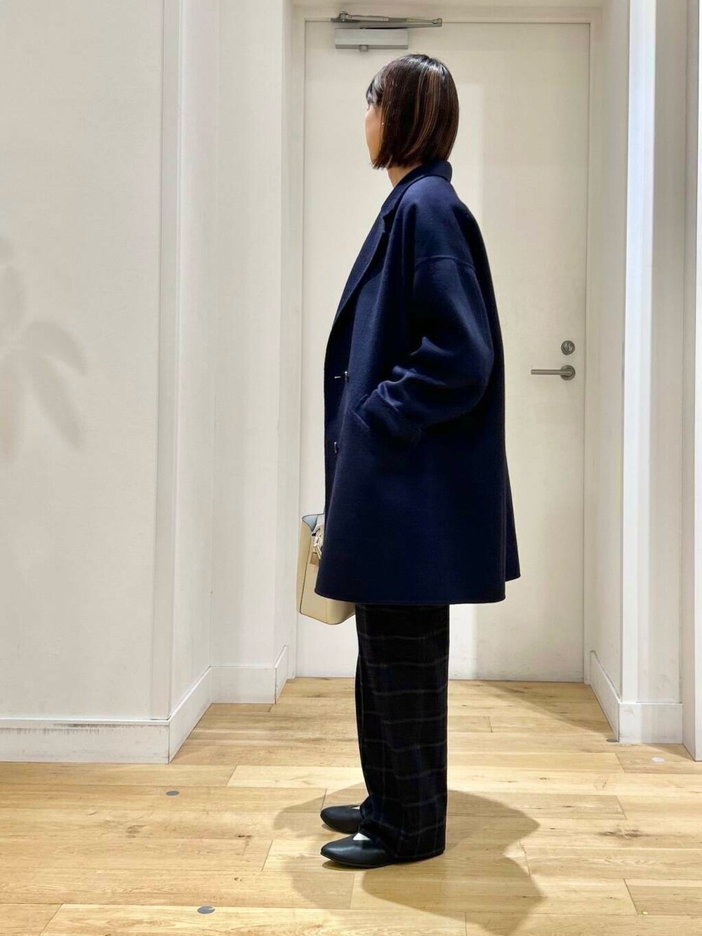 ウールのコートは、ゆったりシルエットなので厚手のアイテムとも合わせやすく、温度調節がしやすいので長い時期にお使いいただけます◎