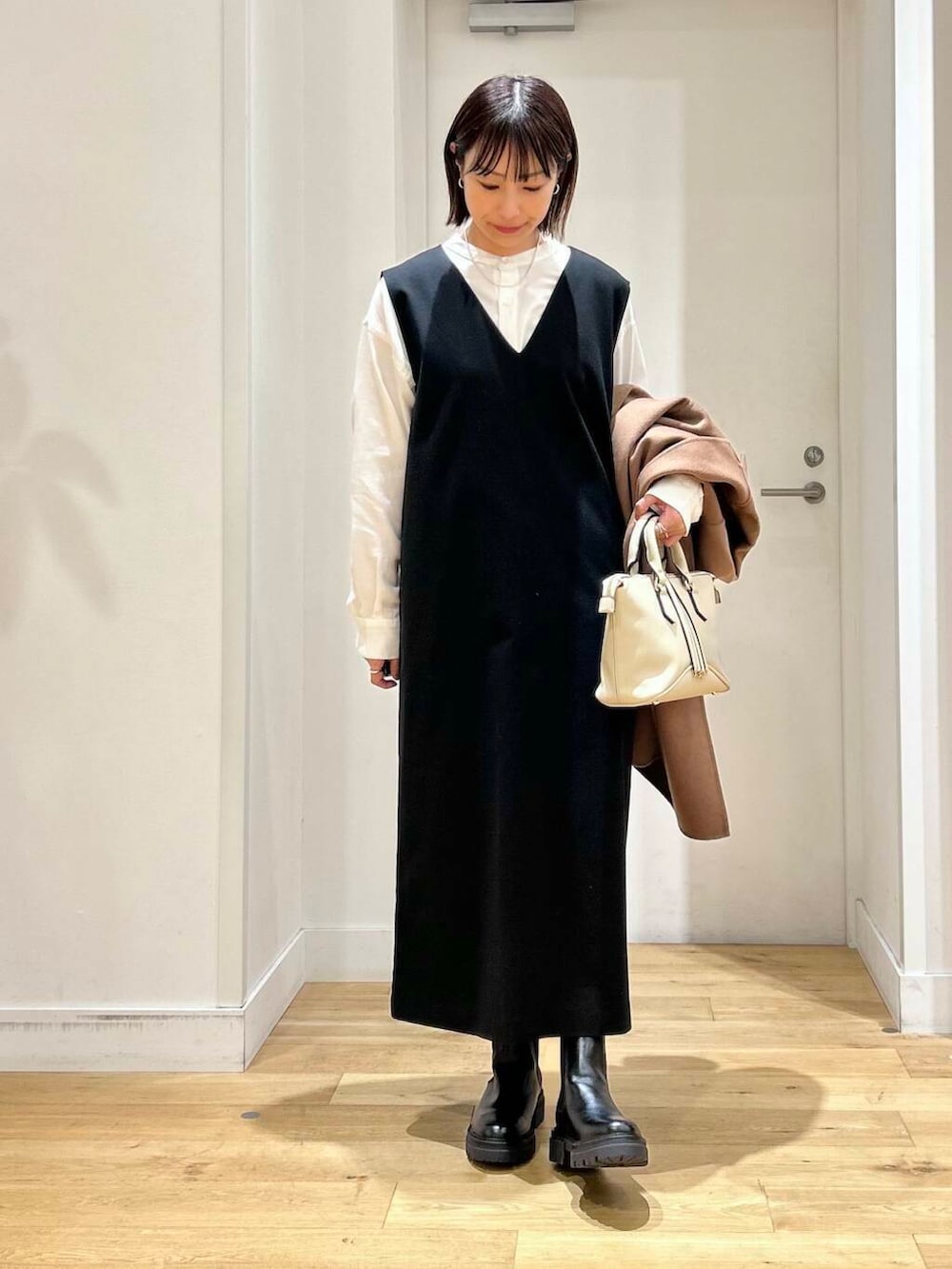 新作のジャンパースカートにウールのコートを合わせて少しきれいめにコーディネートしてみました!