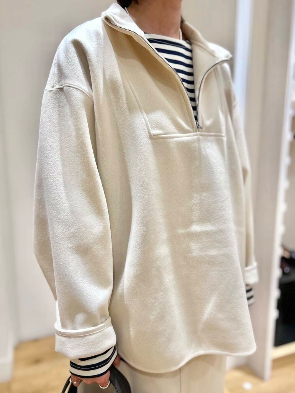 ハーフジップのトップスは、メルトン生地でとても暖かく、ゆとりのあるサイズ感!