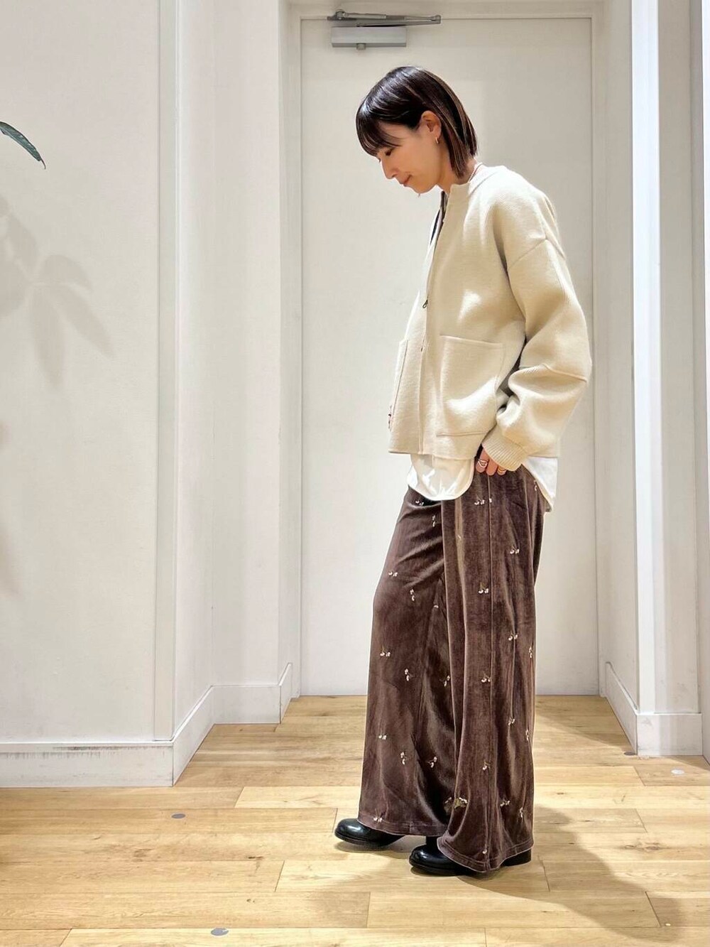 ベロア素材と刺繍が可愛いパンツは、トレンドを詰め込んだ主役になるアイテム!