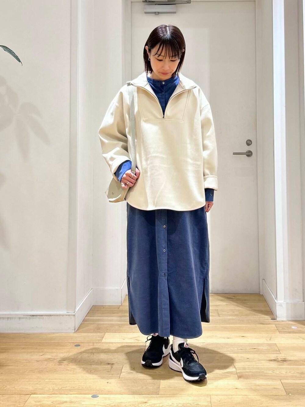 ワンピースにハーフジップのプルオーバーを重ねてレイヤードスタイルでコーディネートしてみました!