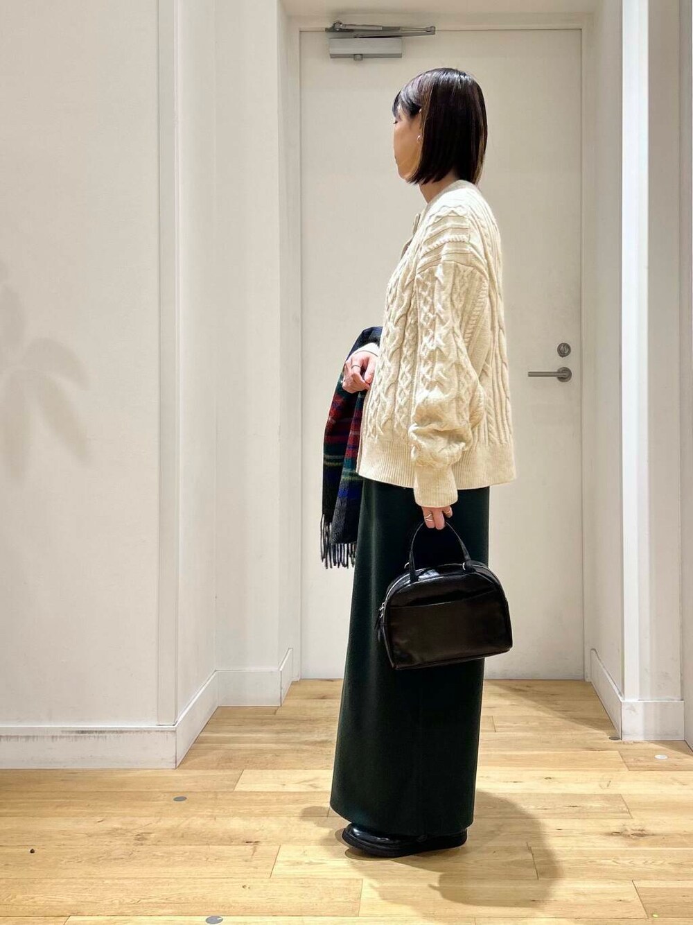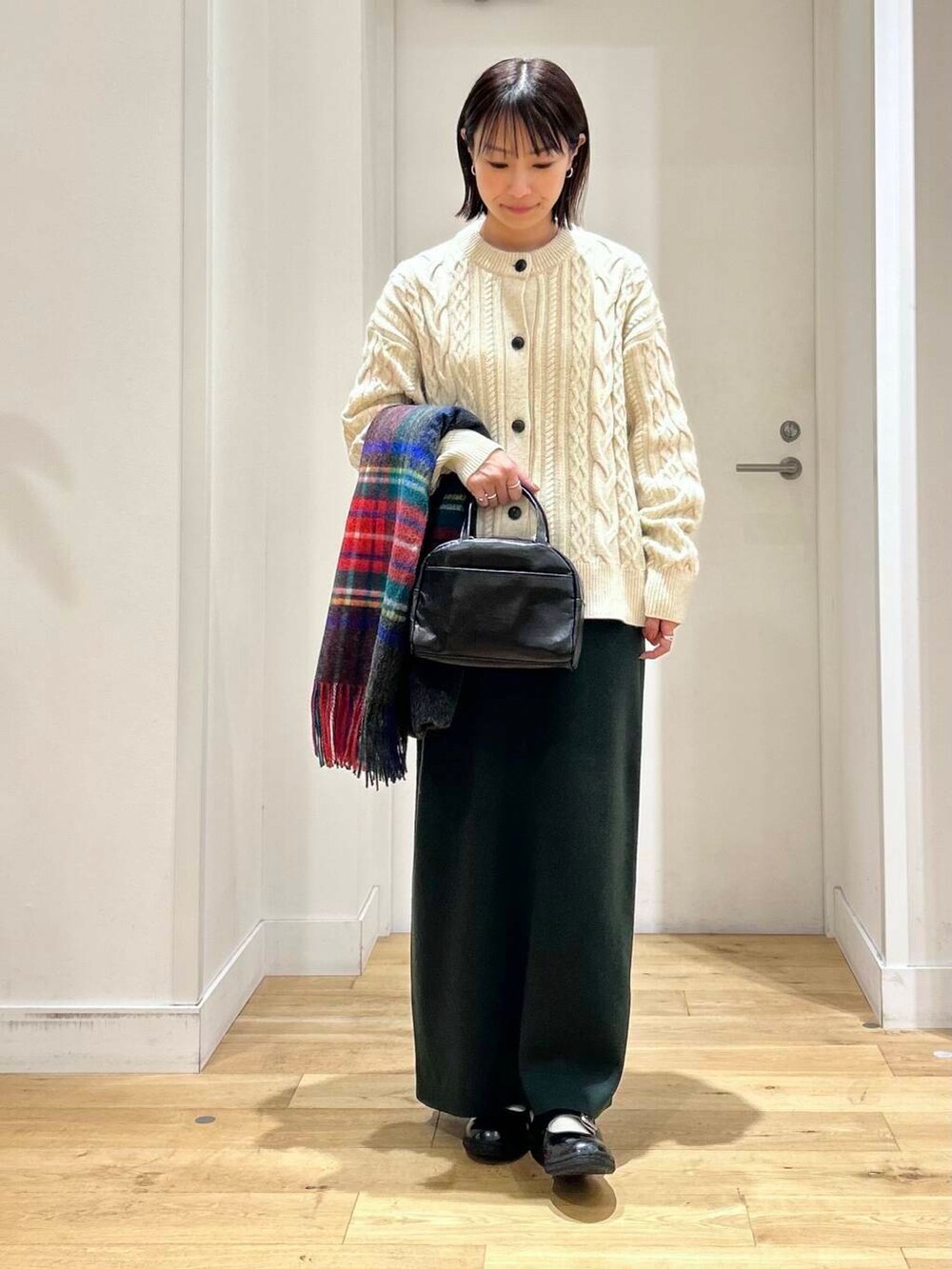 毎年人気のケーブル編みが可愛いカーディガンを主役にシンプルにコーディネートしてみました!