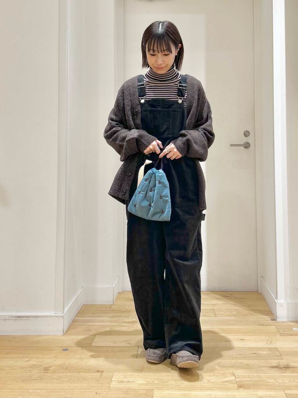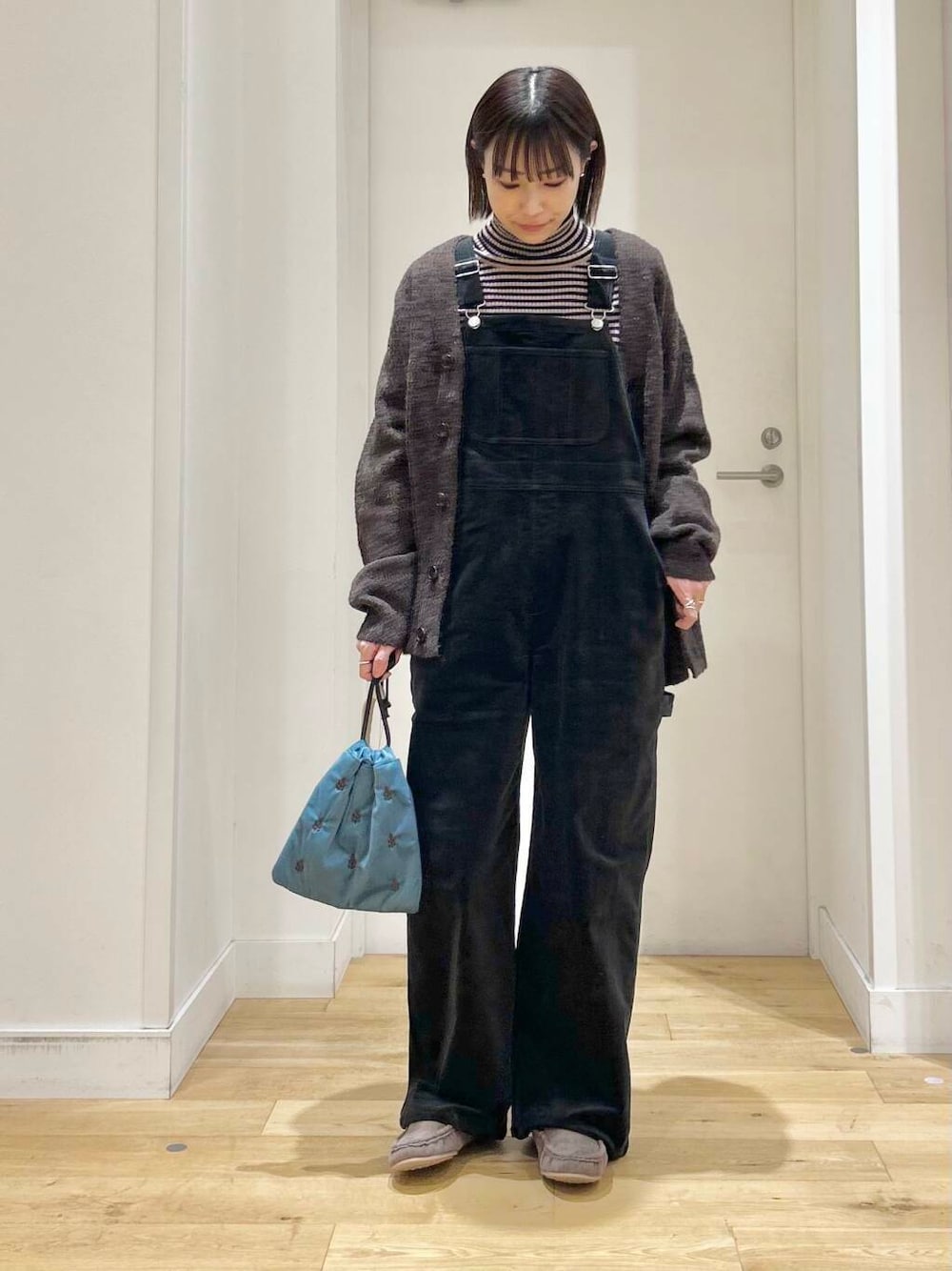 コーデュロイ素材が可愛いサロペットは、程よくゆとりがあるシルエットとストレッチの効く素材で楽に着用していただけます◎