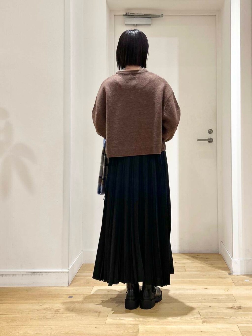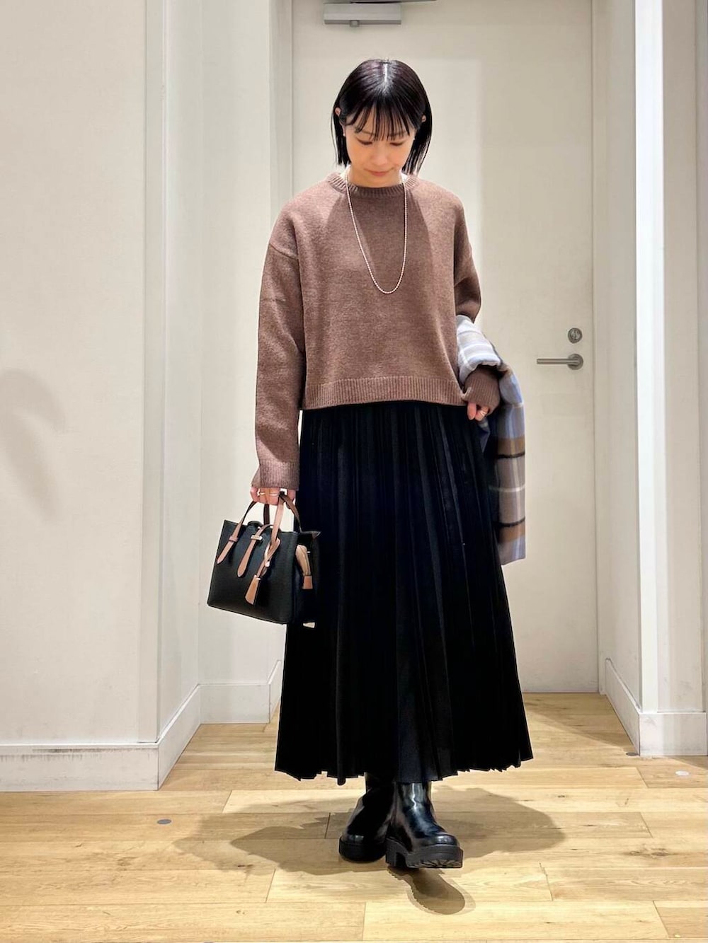 ウール100%素材のニットは、ショート丈なのでワイドパンツやロングスカートと合わせてもバランス良く着用できるアイテムです!