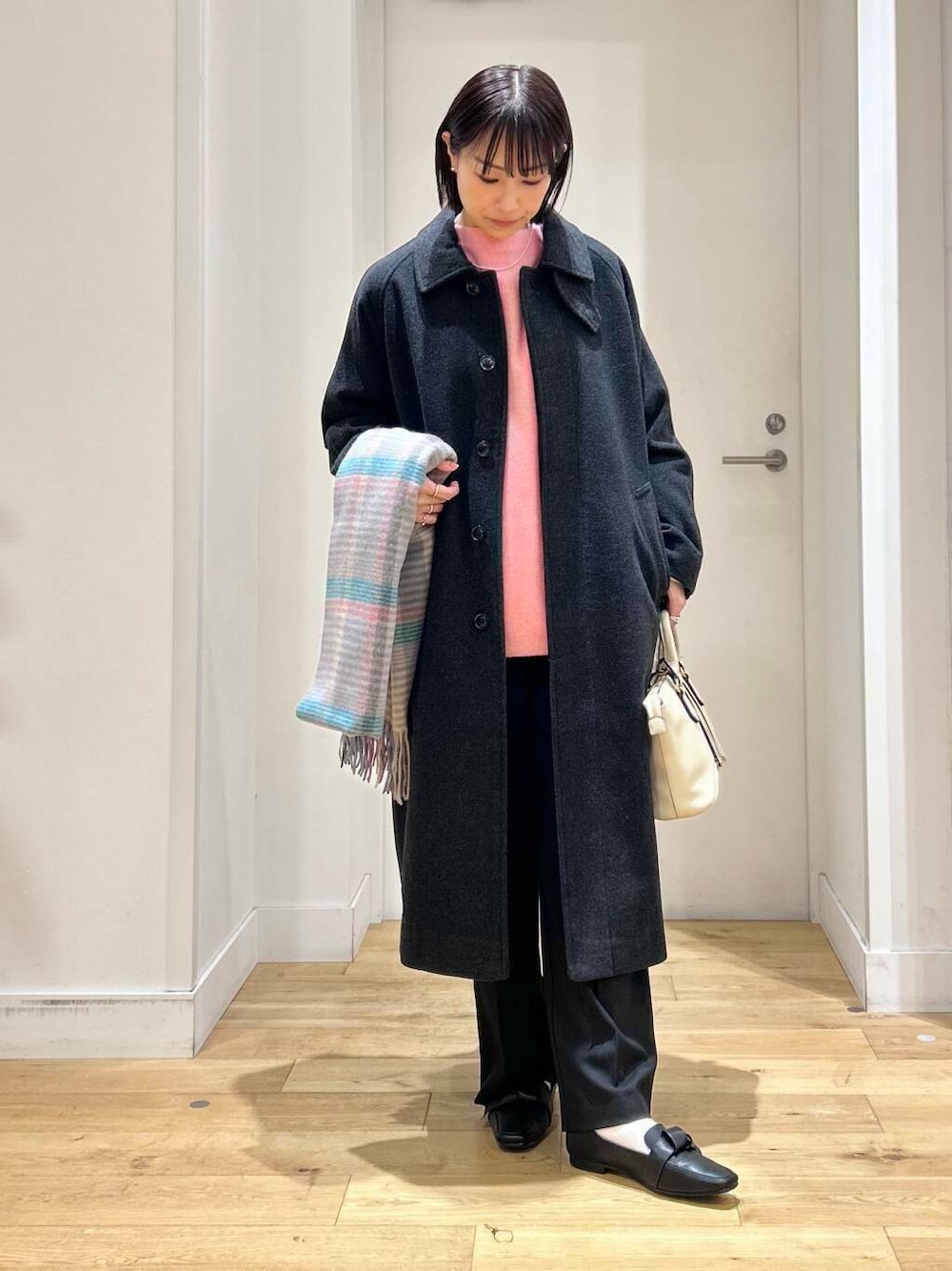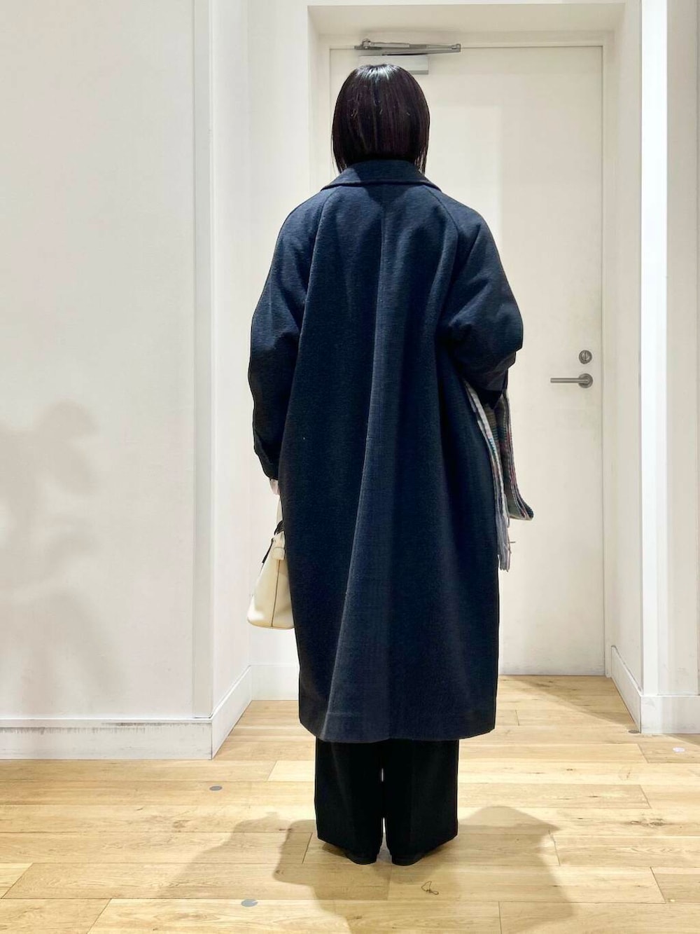 コートは、ゆったりとしたサイズ感で厚手のニットやボリュームスリーブのアイテム合わせも楽ちんです!