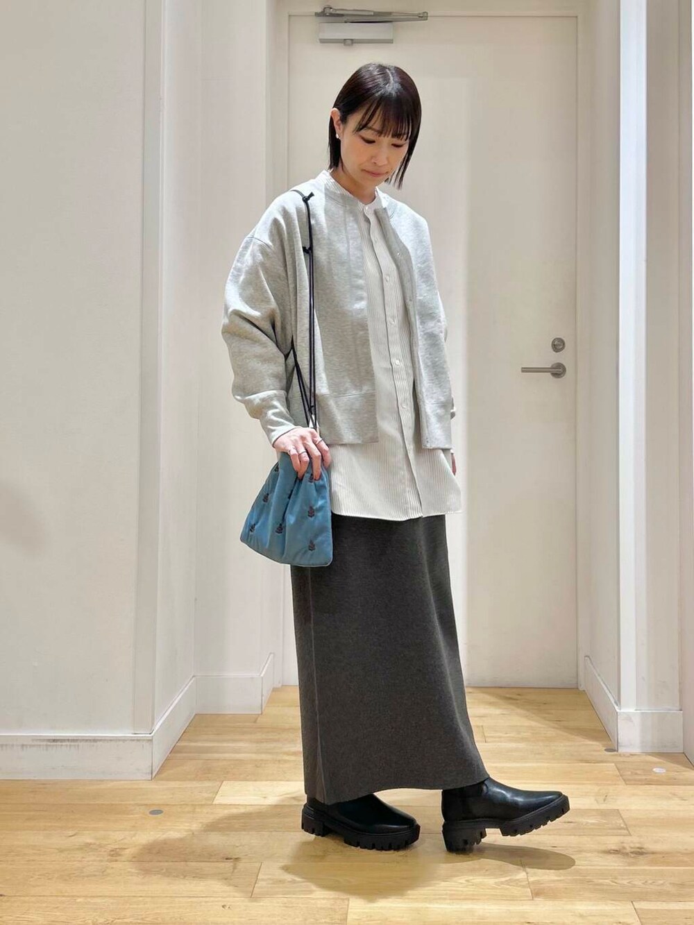 ボタンが目立たないシンプルなデザインなので、着回しもしやすいですよ◎
