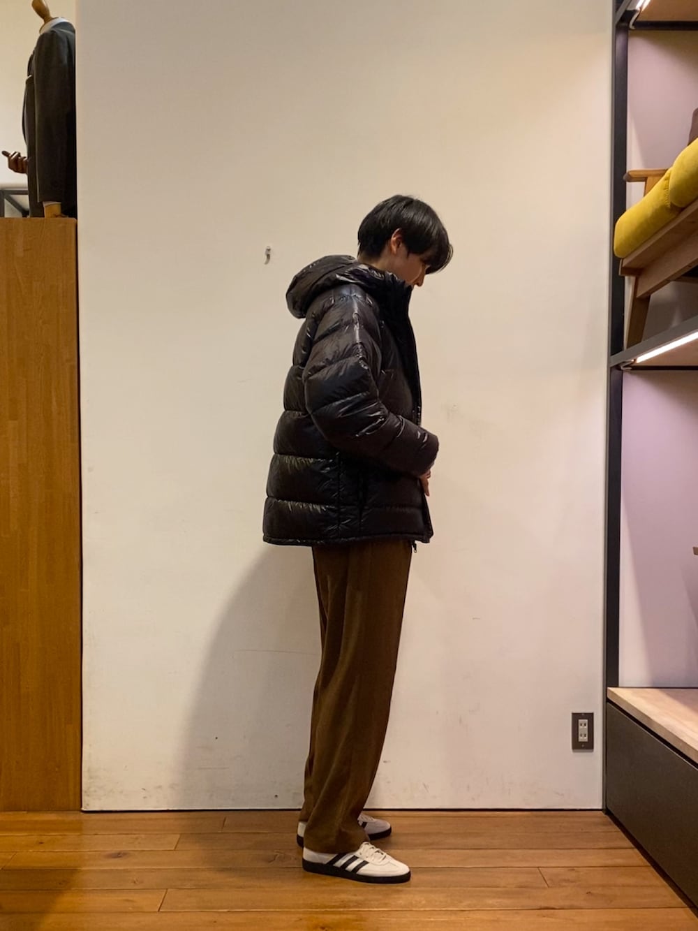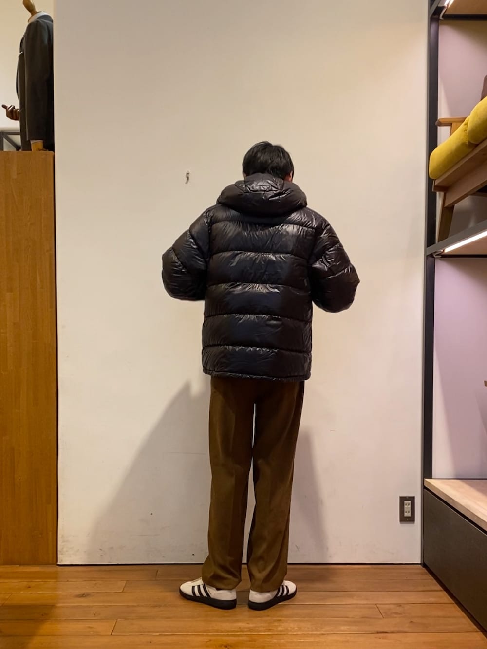 光沢のある上品な仕上がりで、裾はゴムスピンドル仕様で、コーディネートや気温に応じたシルエット調整ができます!