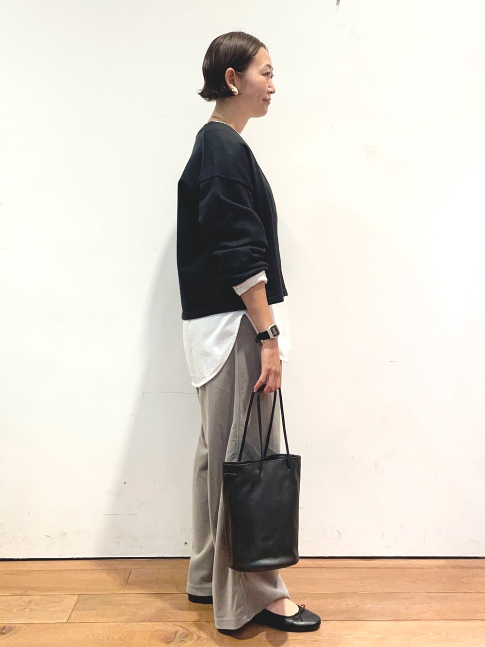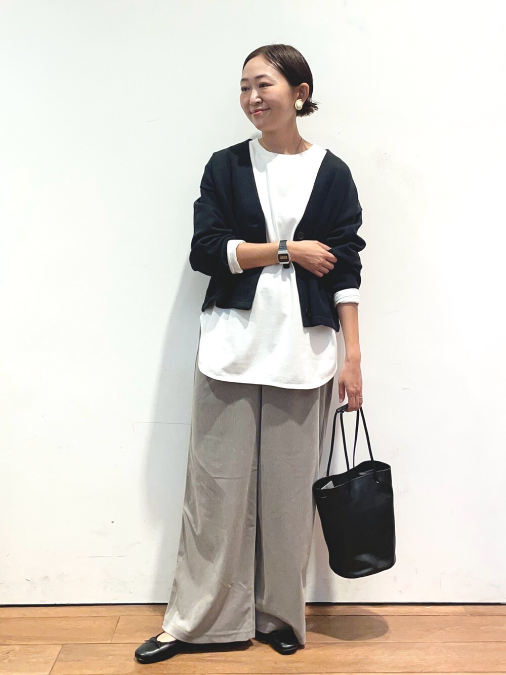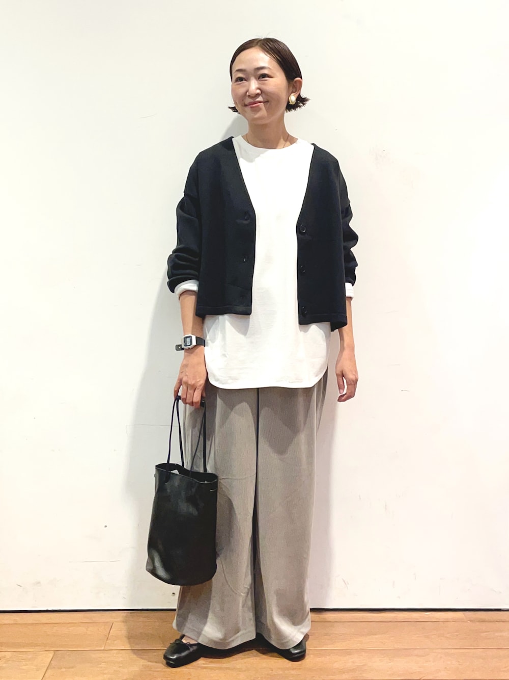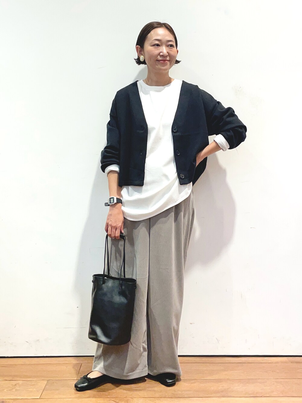 カーディガンは毛玉になりにくい生地で、肌触りも抜群でおすすめです✨パンツもラクに履いていただけます。