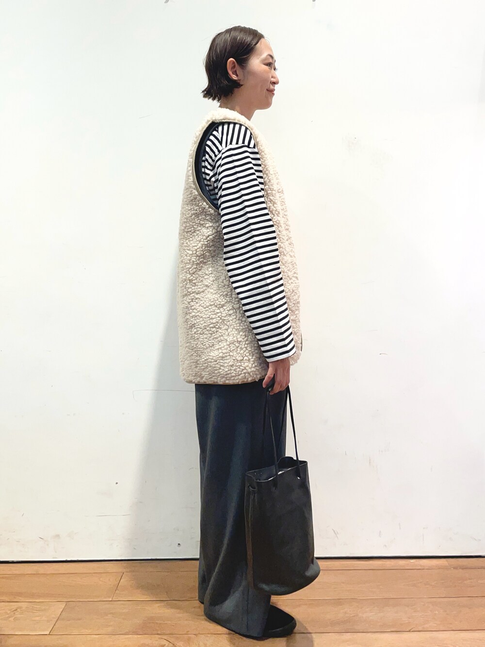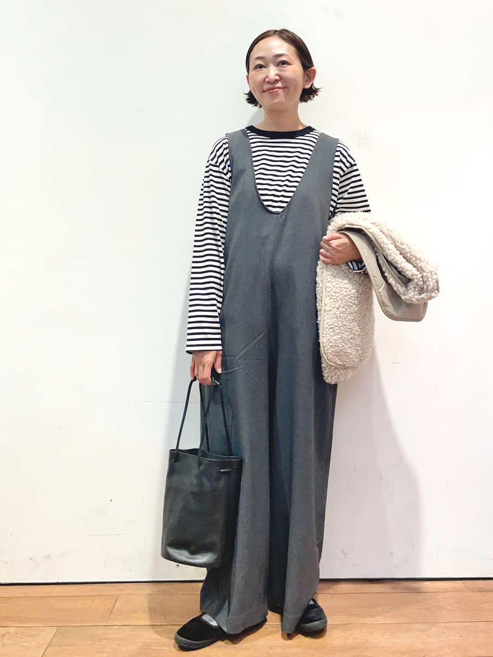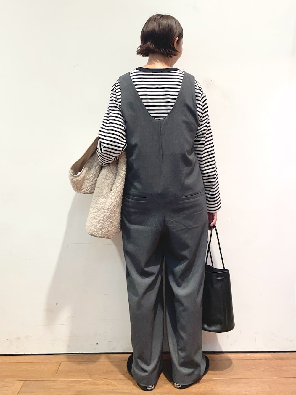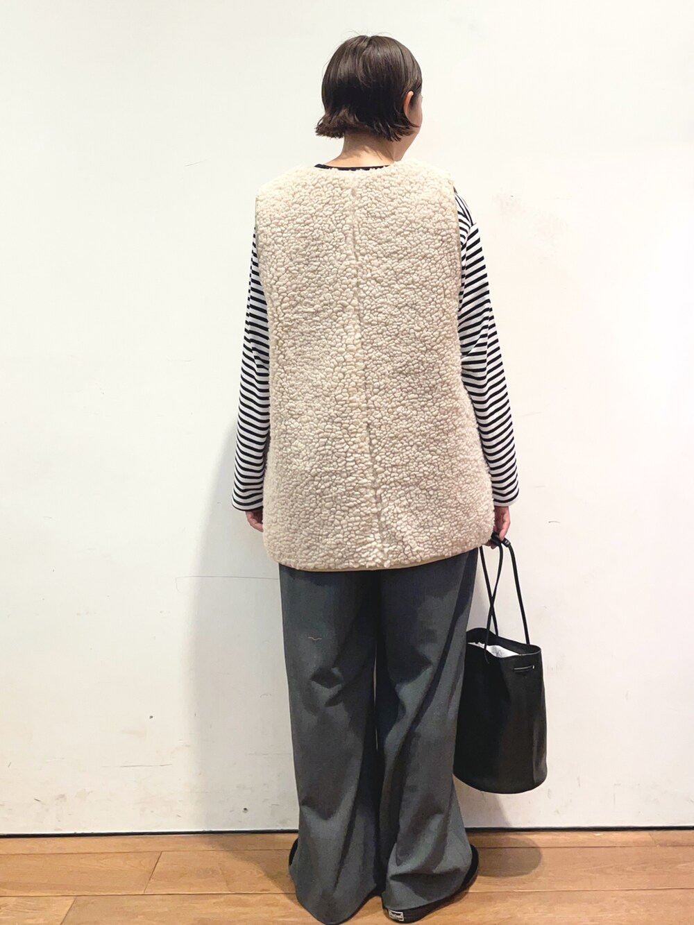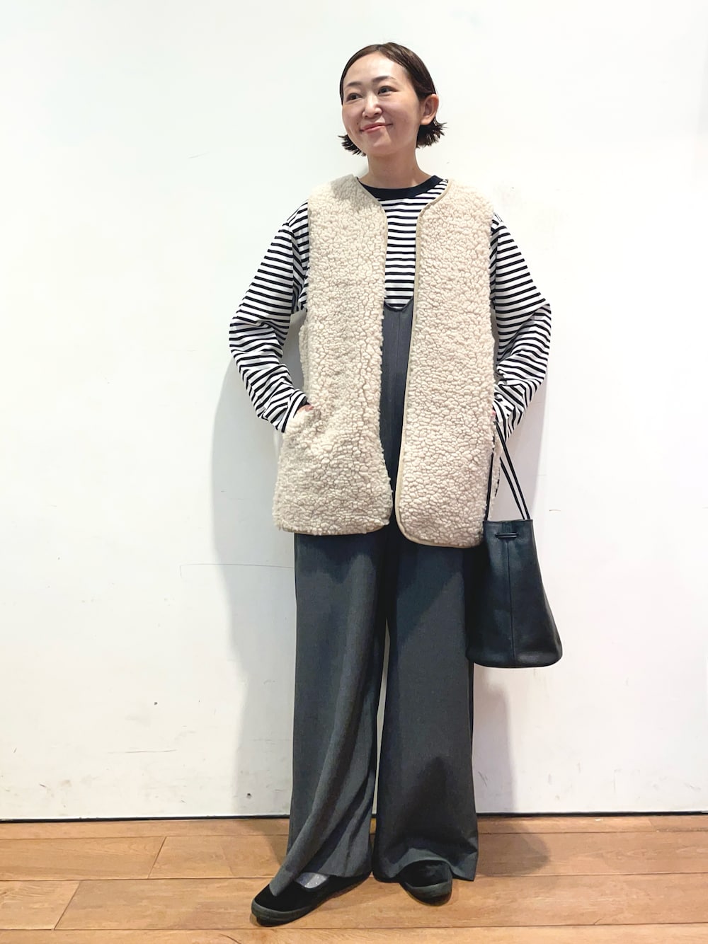 モコモコのベストはとっても軽くて、ヒップも隠れるので安心感があります☺️サロペットも着回しがきくアイテムです◎