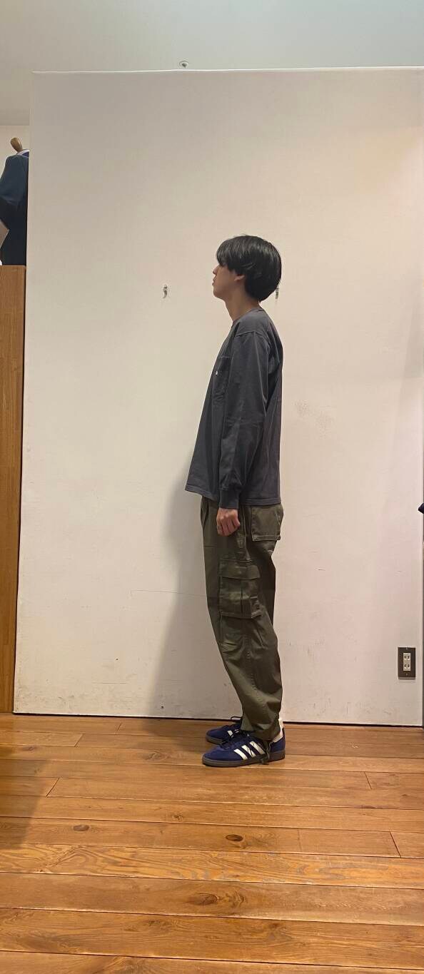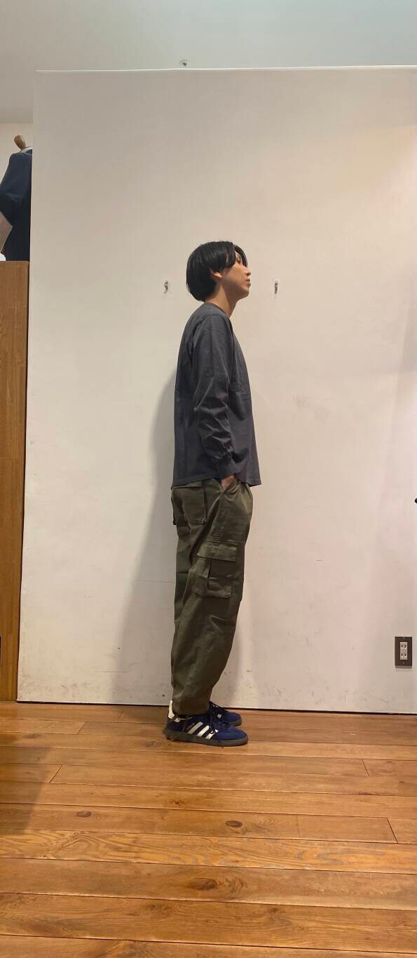 一見暗いコーディネートに見える組み合わせですが足元のadidasのナイトインディゴカラーで深みのある見え方ができ、僕個人とても気に入っているシューズの一つです!
