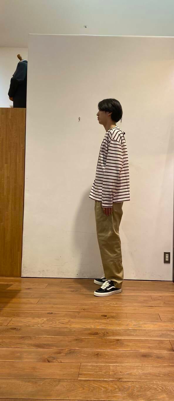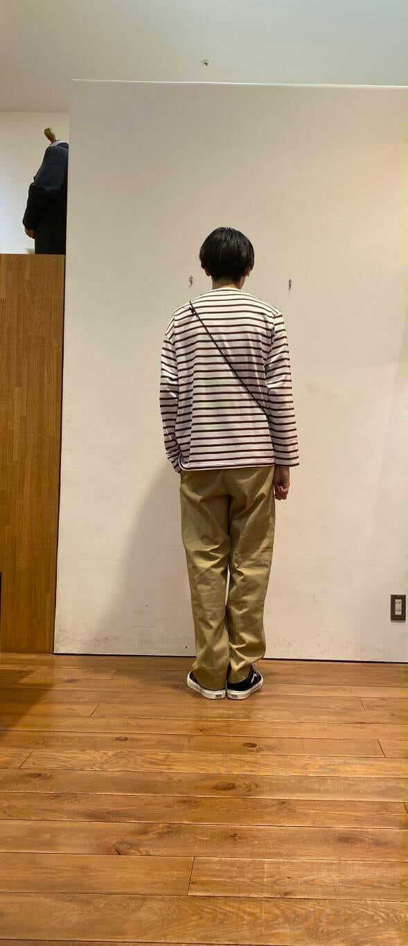 今回は、ボートネックボーダーにミリタリー感のあるチノパンツで組んだ、秋に女性ウケ間違いなしコーディネートです!