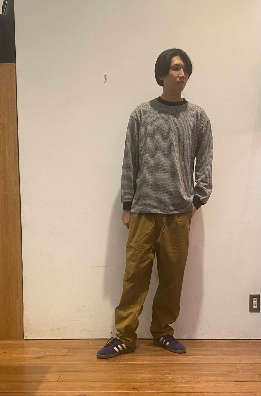 今回は、ジャガードボーダーTとグラミチ×EKALのトラウザーを合わせたコーディネートです!
