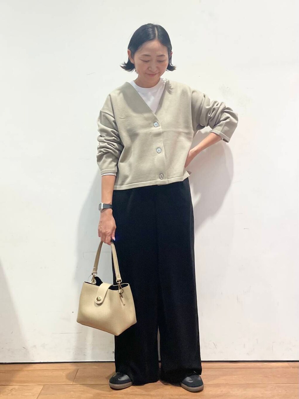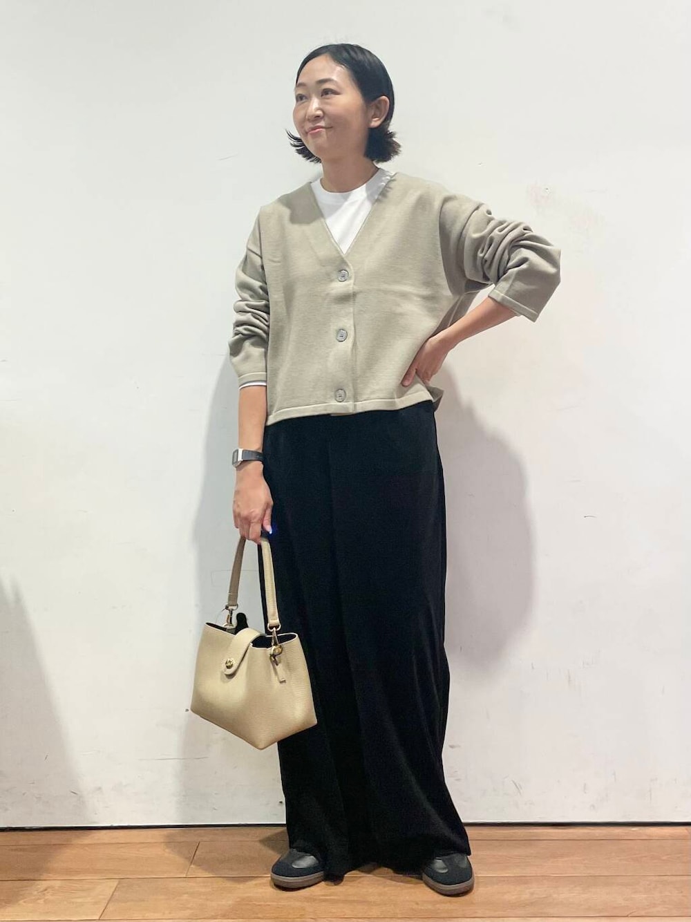 丈が少し短めなのでボリュームのあるボトムスとの相性もいいです!