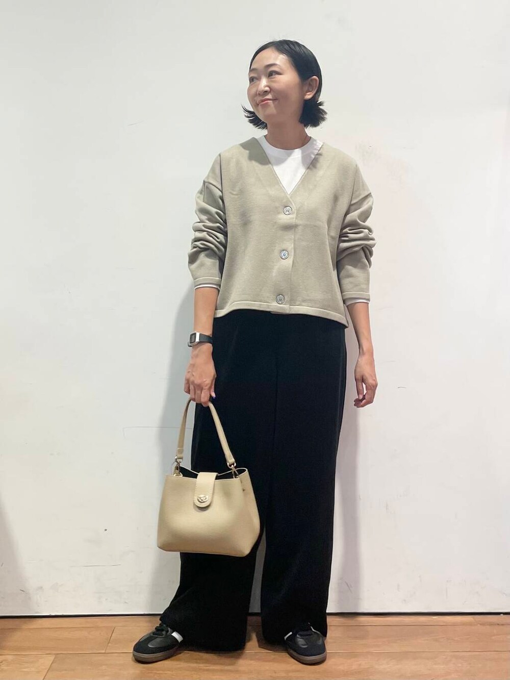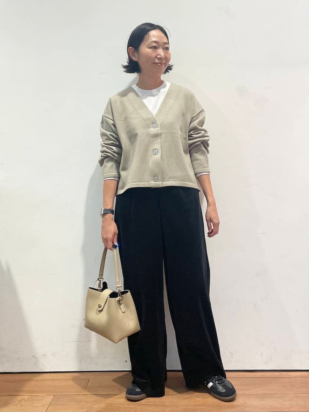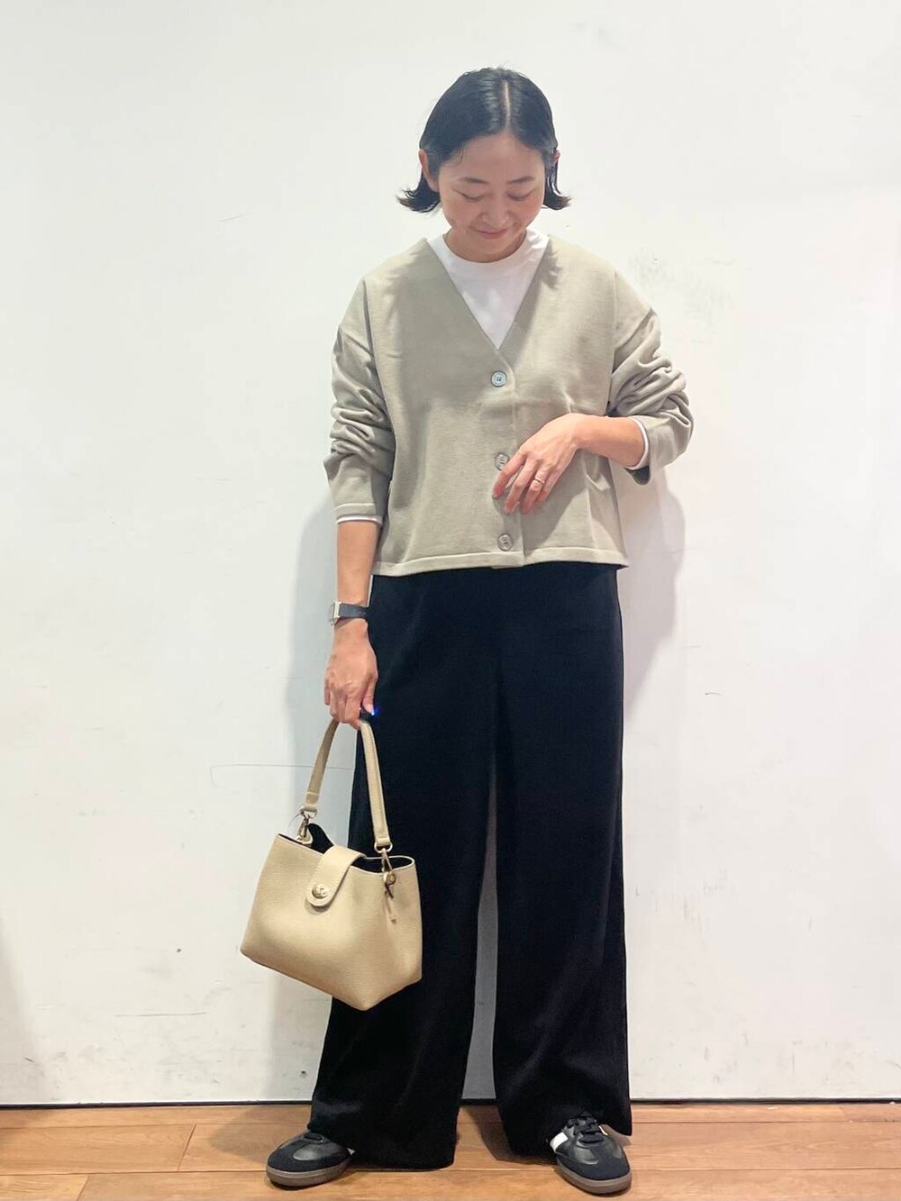 カーディガンはVネックなのでキレイめにも使いやすく、