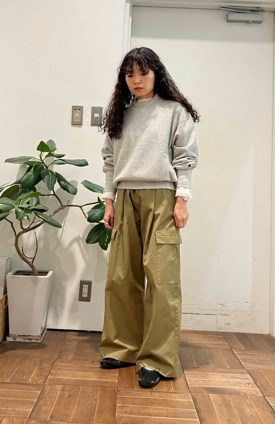championの別件スウェットにブラウスを忍ばせてフリルを出して合わせました。