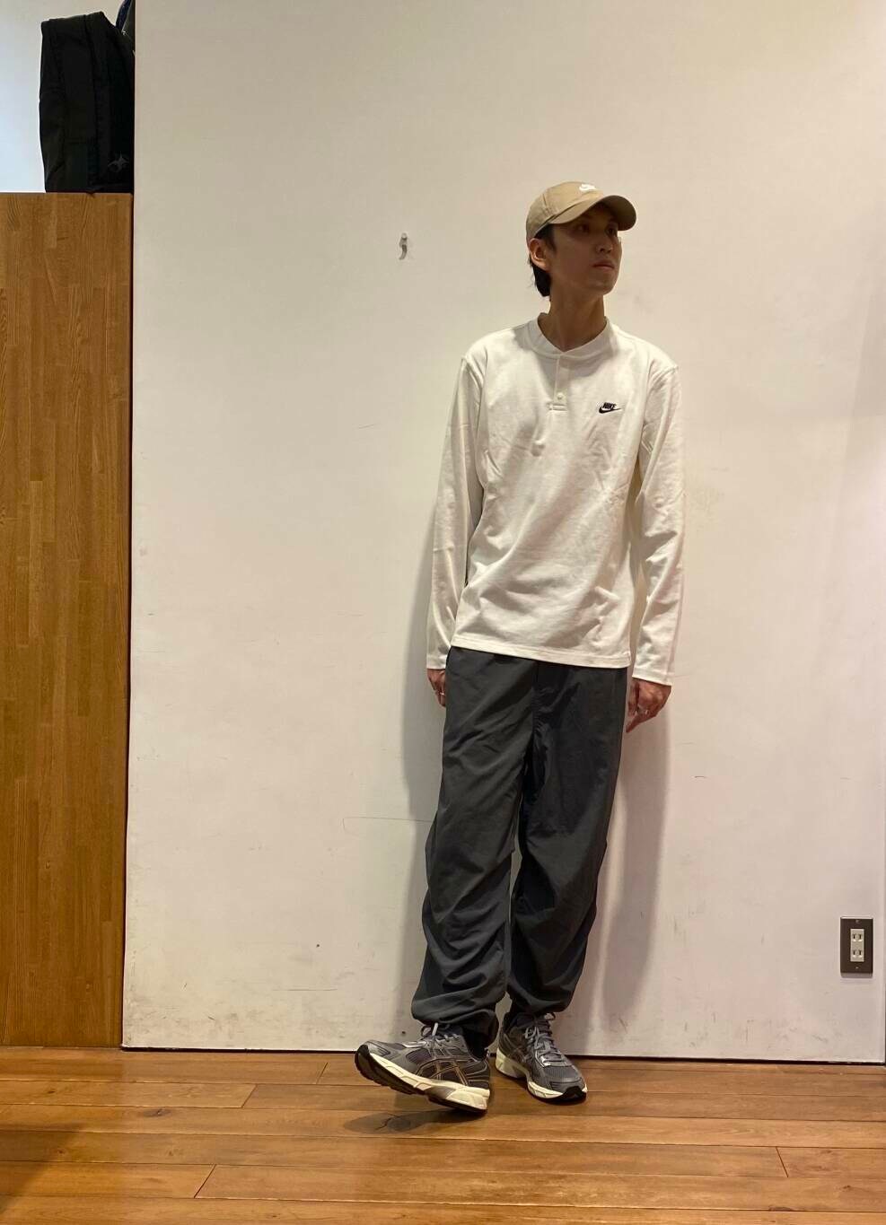 今回は、ナイキのヘンリーネックシャツにナイロンのパンツで組んだコーディネートです!
