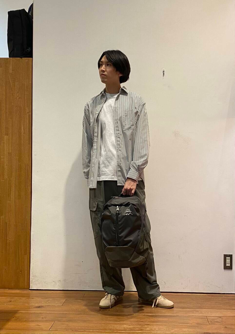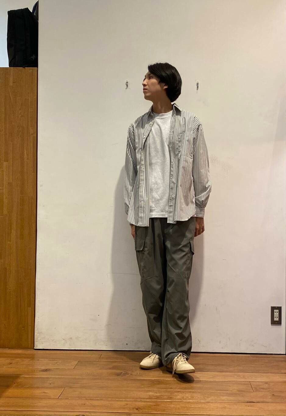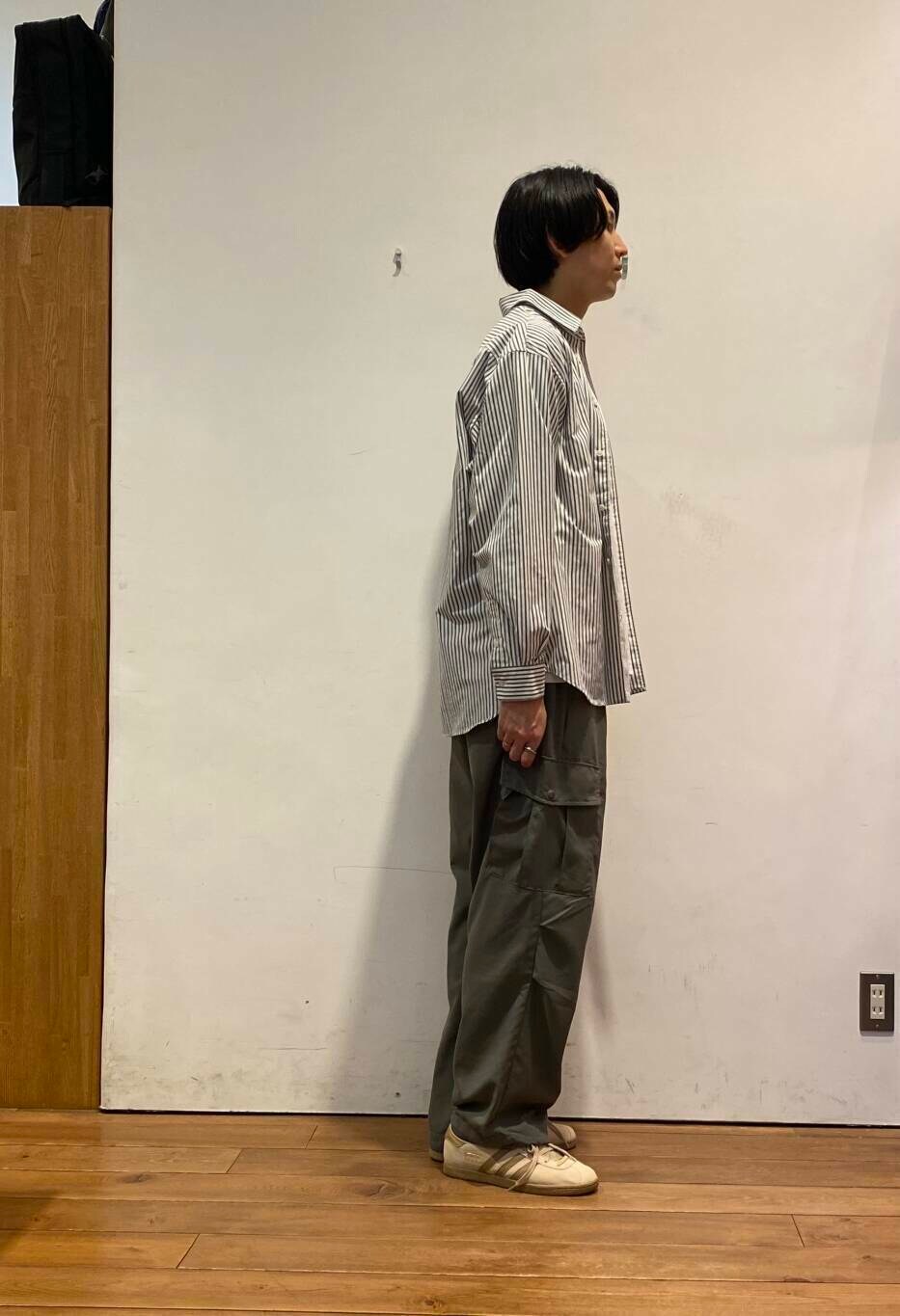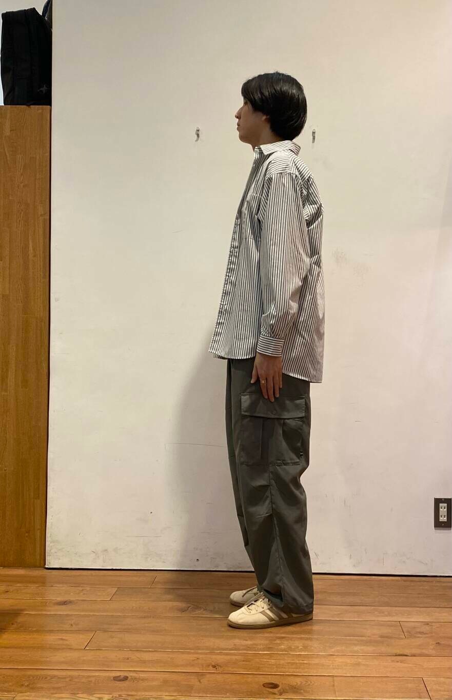 今回は、ルーズストライプシャツにカーゴパンツを組み合わせシンプルコーディネートです!