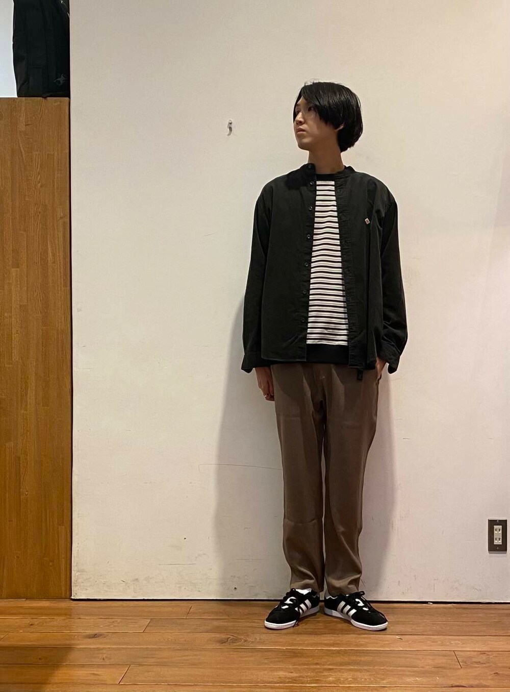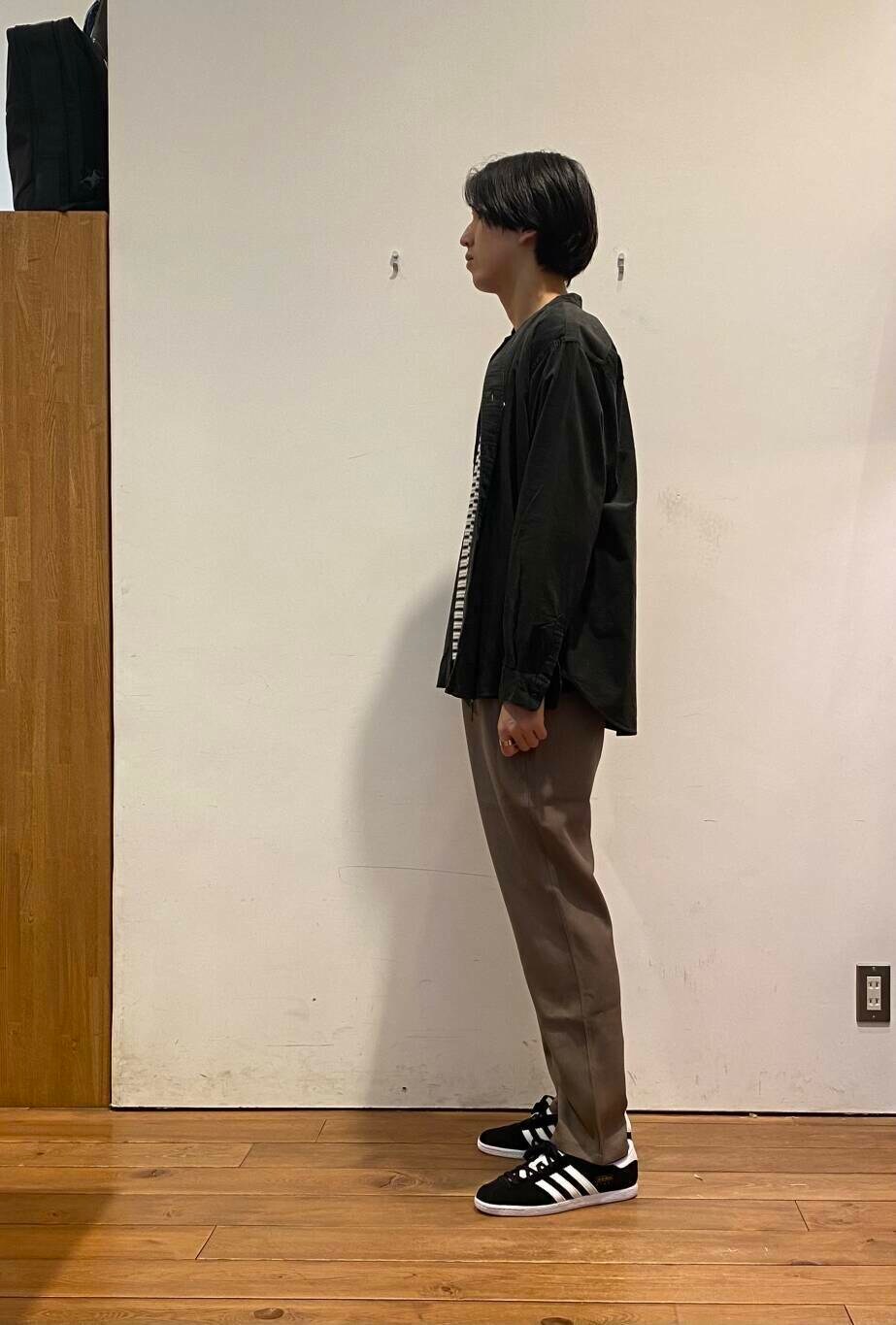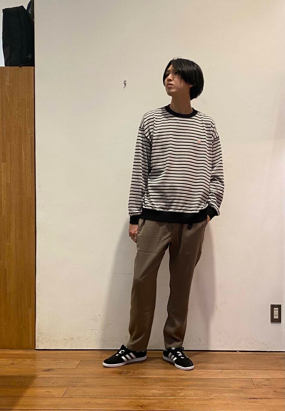 今回は、ダントンのバンドカラーシャツとボーダーTシャツに、グラミチのウールライクトラウザーを合わせた秋コーディネートです!