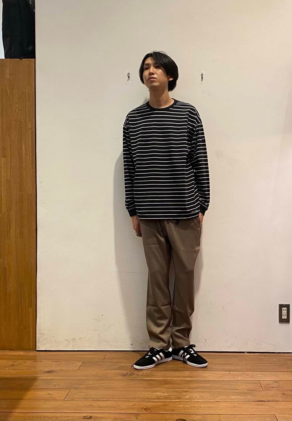 今回は、カバーオールシャツにボーダーのインナーをいれて、グラミチのウールライクトラウザーを使った秋コーディネートです!