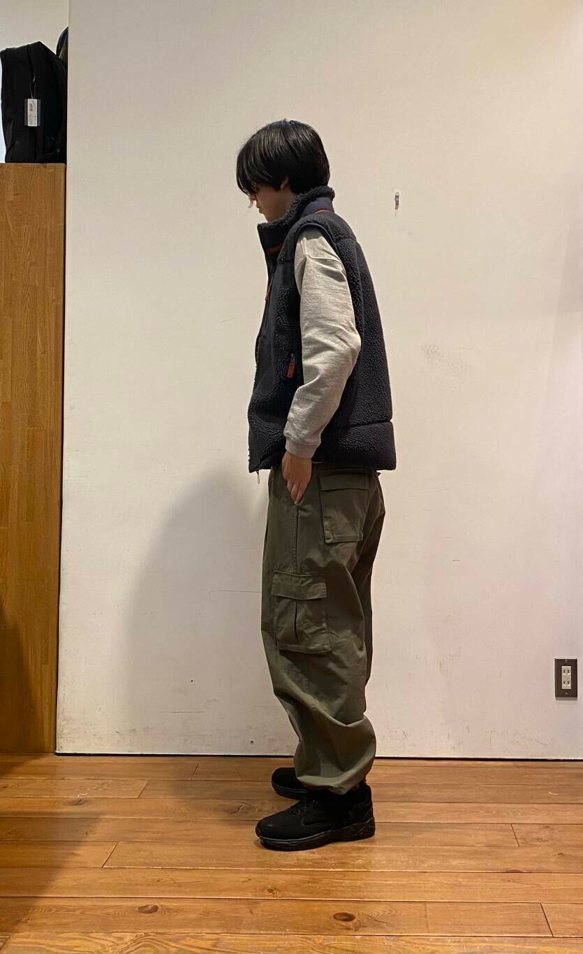 今回はパタゴニアのベストに、スノーピークのスウェット、パンツはカーゴパンツで合わせたアウドドアコーディネートです!