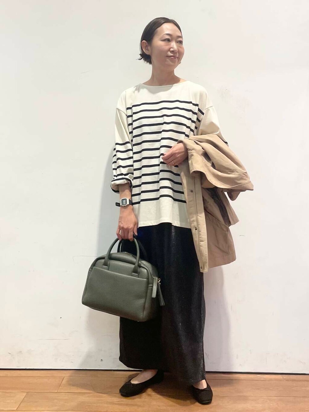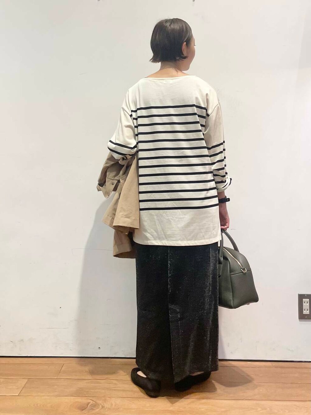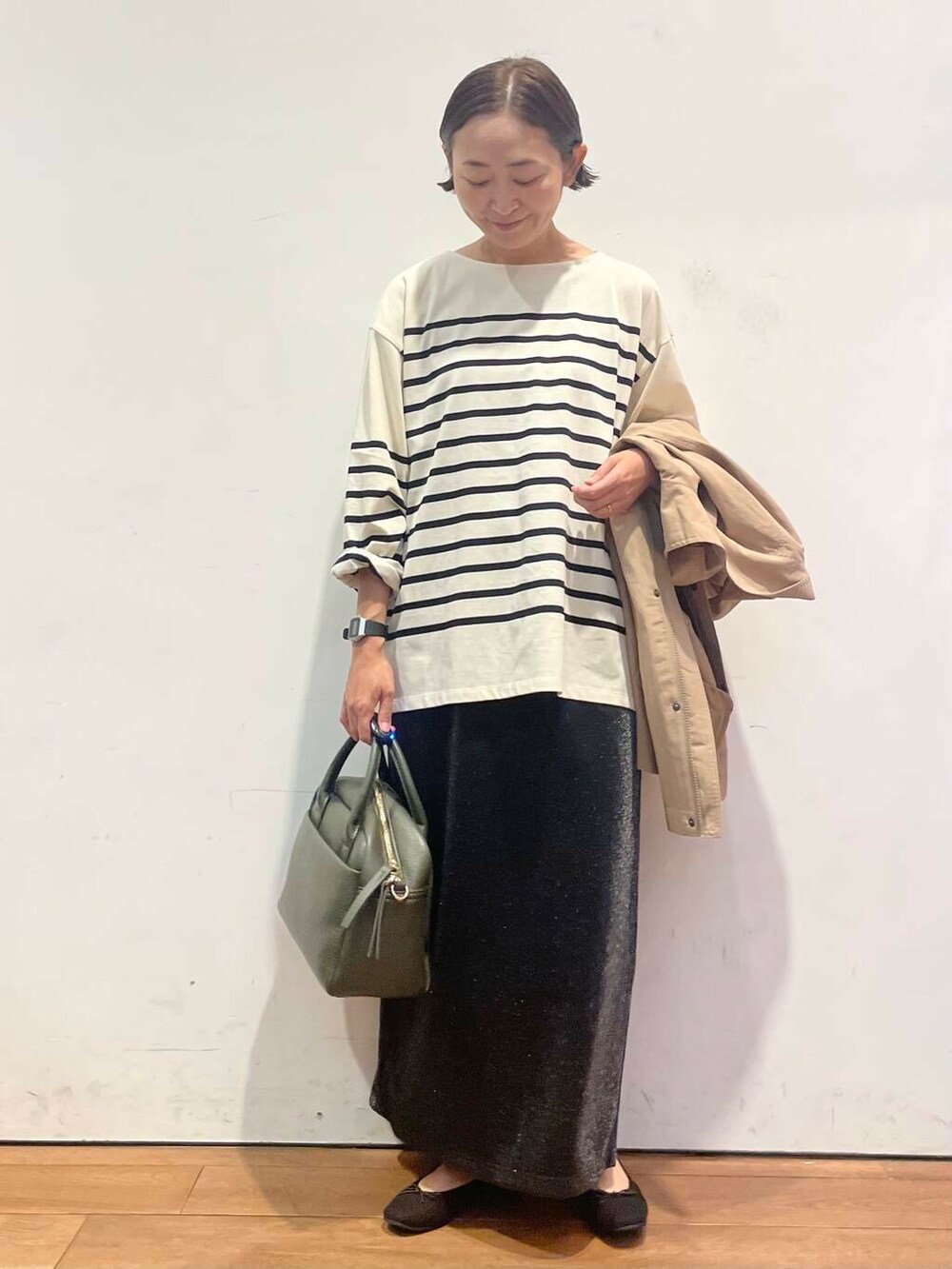 ラメのスカートもトレンド感があり、