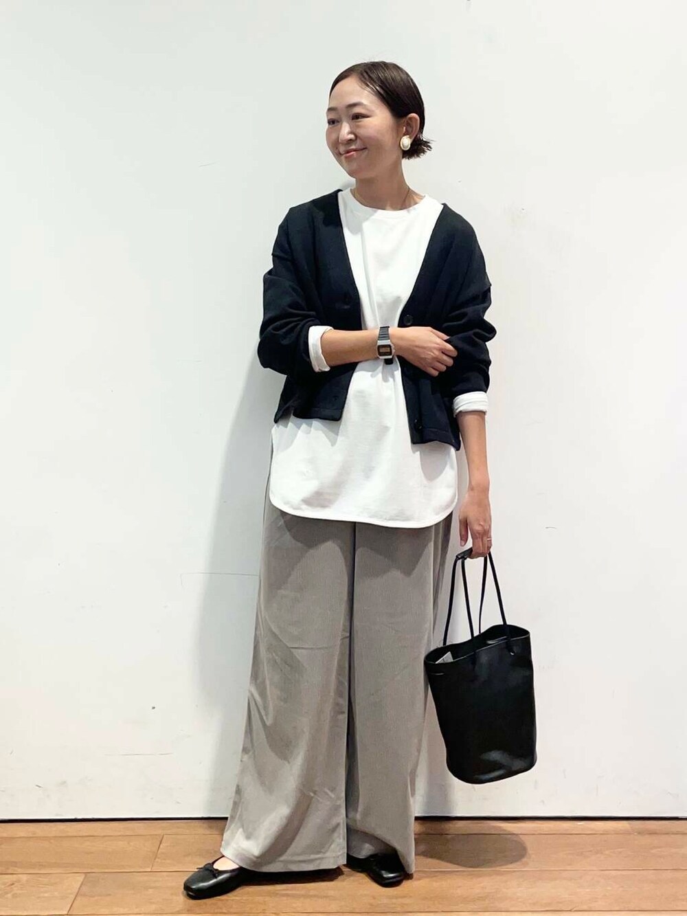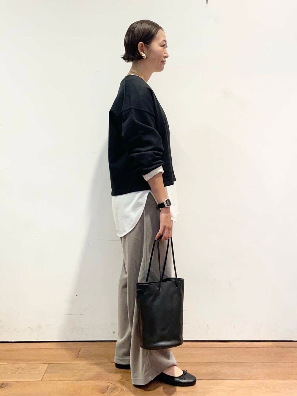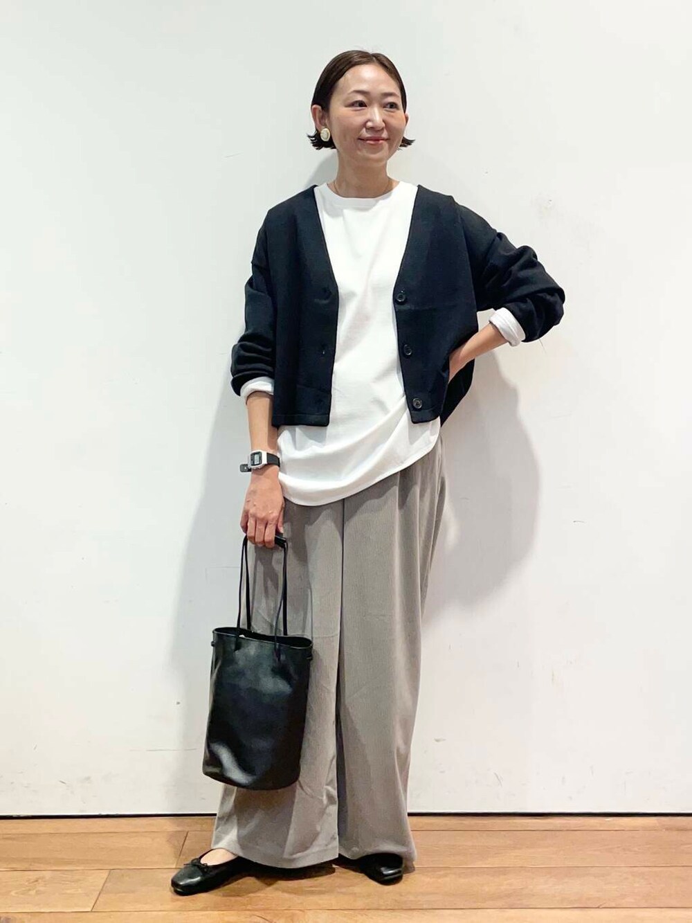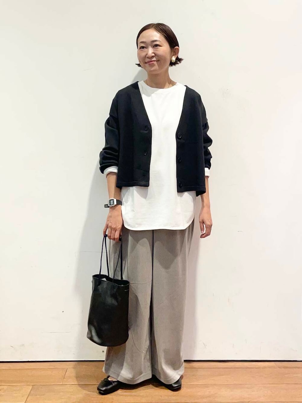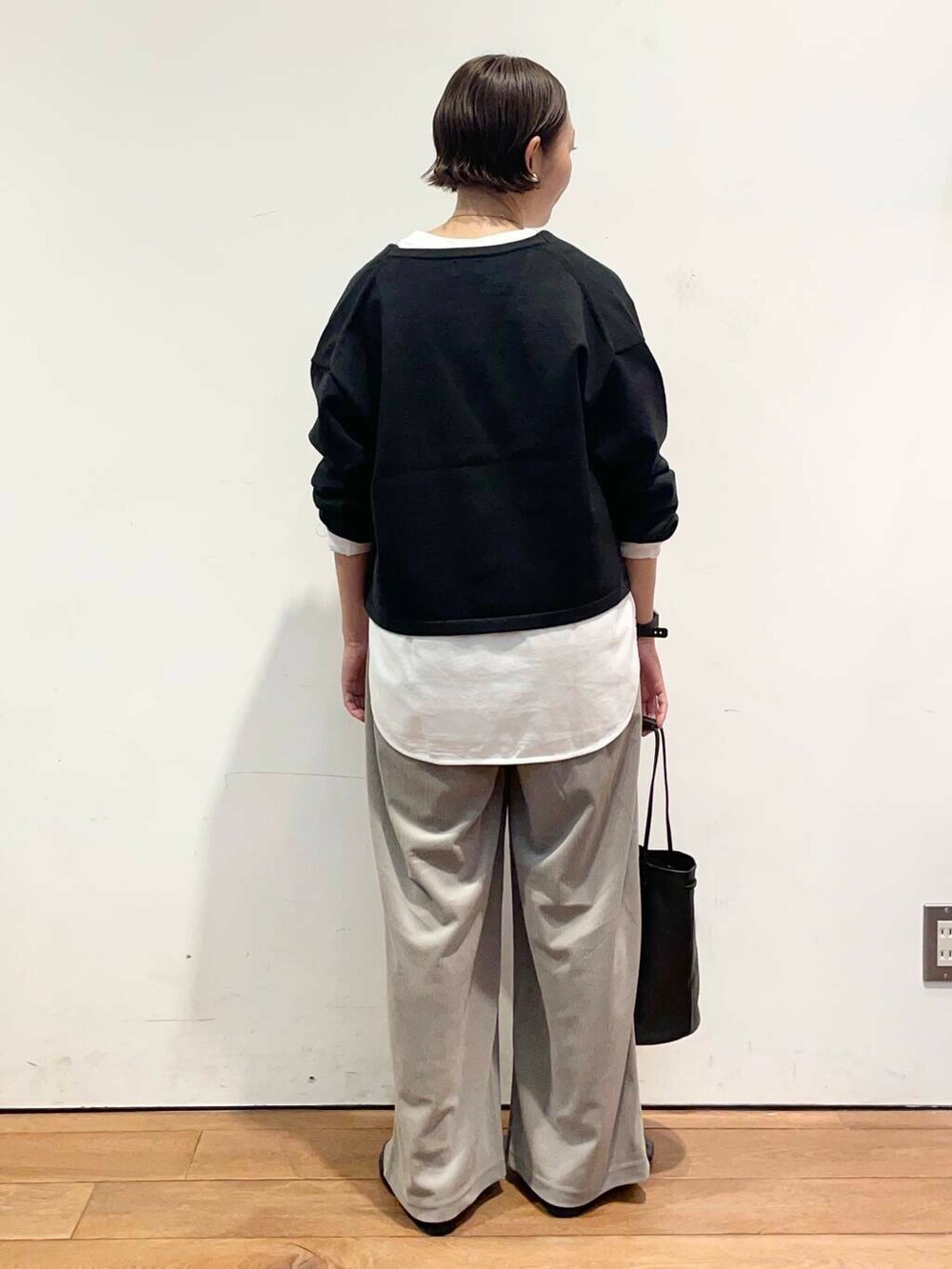 ショート丈でスッキリしてるので、ワイドパンツなどと相性がいいです。