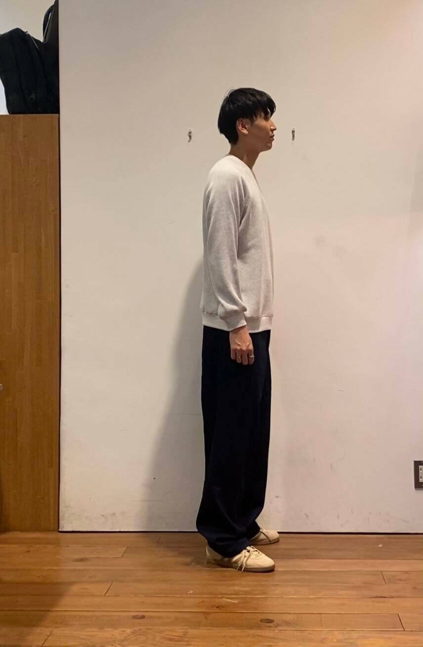 定番のワッフルTは、そこまでオーバーサイズの作りではなく、標準サイズでラグランスリーブになっており一枚で着れる商品となっております!