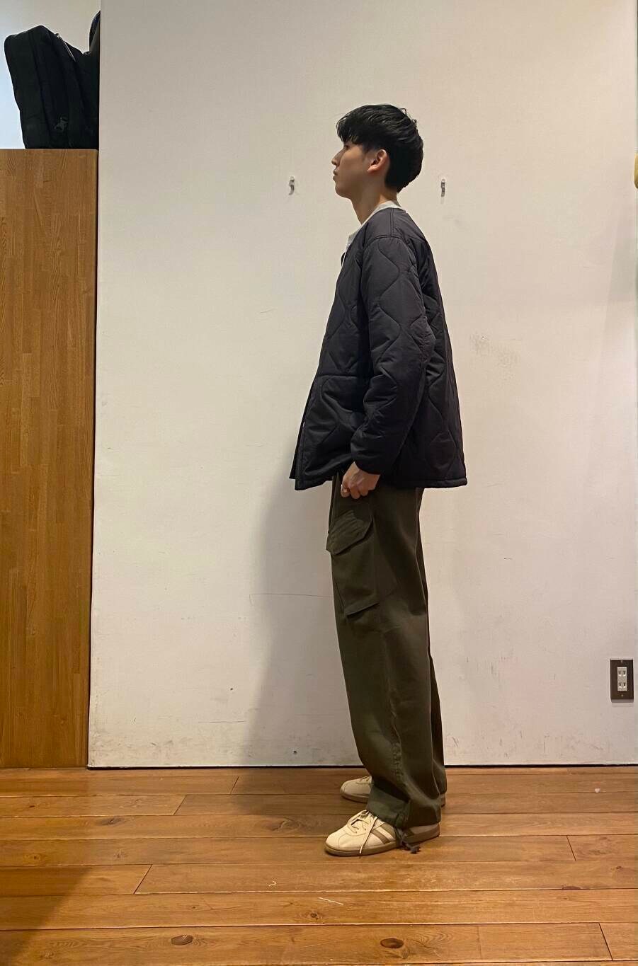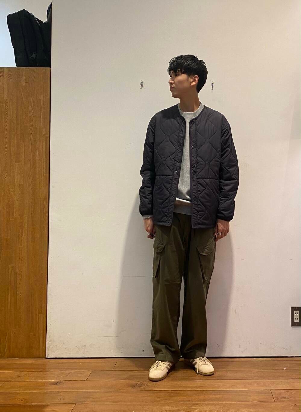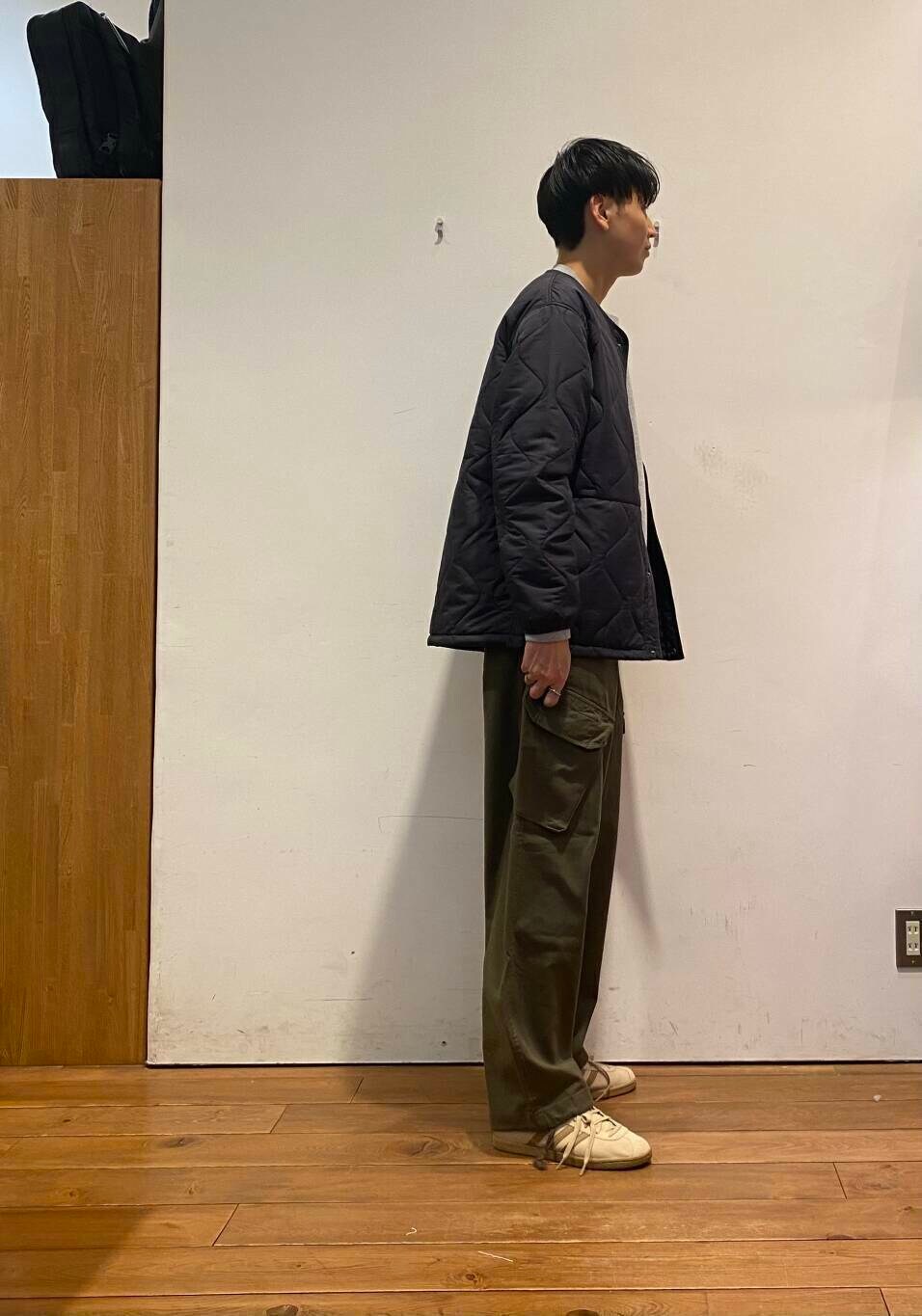 今回はキルティングジャケットにスウェットとカーゴパンツを合わせた休日コーディネートです!