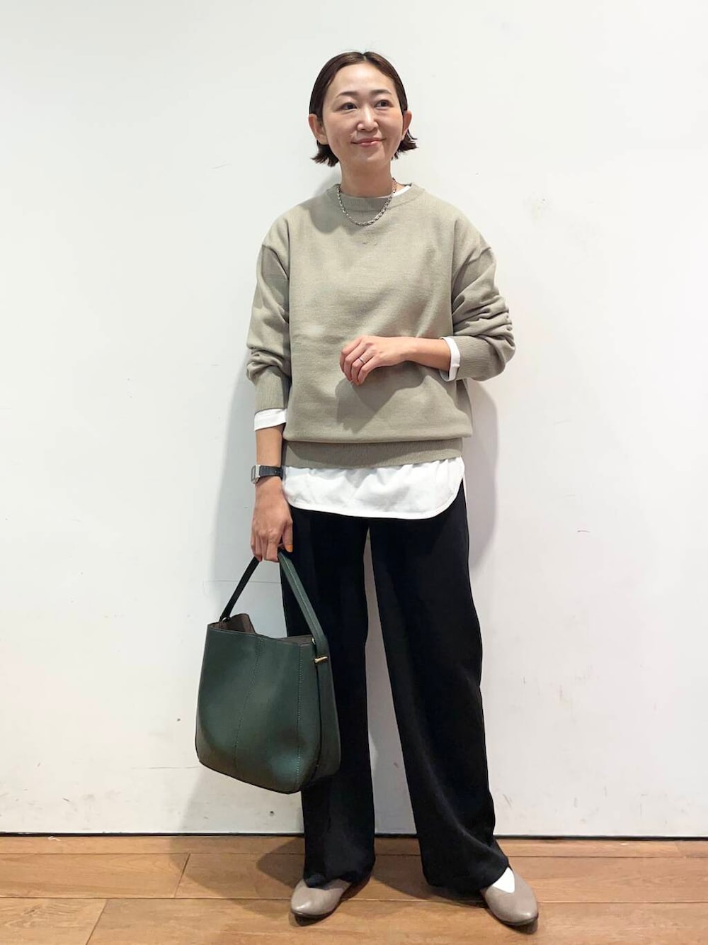 大人気の200日ニットシリーズの、スウェットライクプルオーバーを着てみました💡