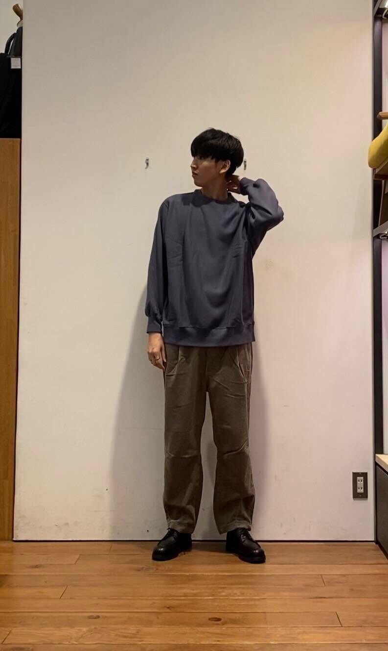 クルーネックスウェットは裏起毛になっていて、柔らかく肌触りのいい生地感となっております!