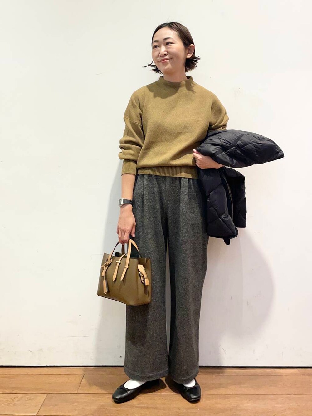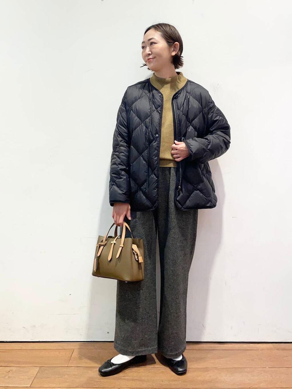 パンツはFORK&SPOONのブラッシュドパンツを合わせました。