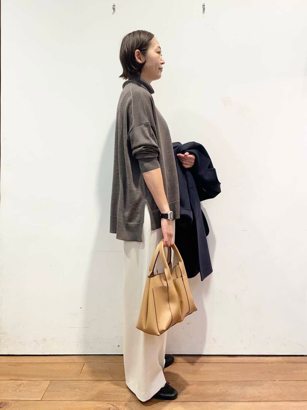 白のトラウザーは、グッとキレイ目な印象になるのでオススメです✨