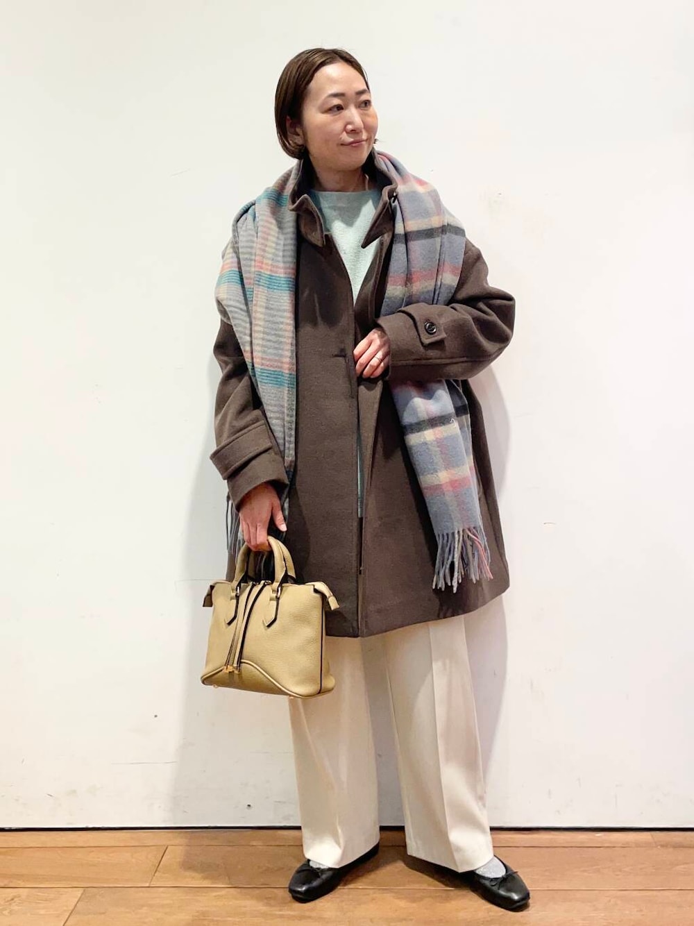 スタンドカラーがトレンド感もありつつ、首周りもあたたかく着られます。