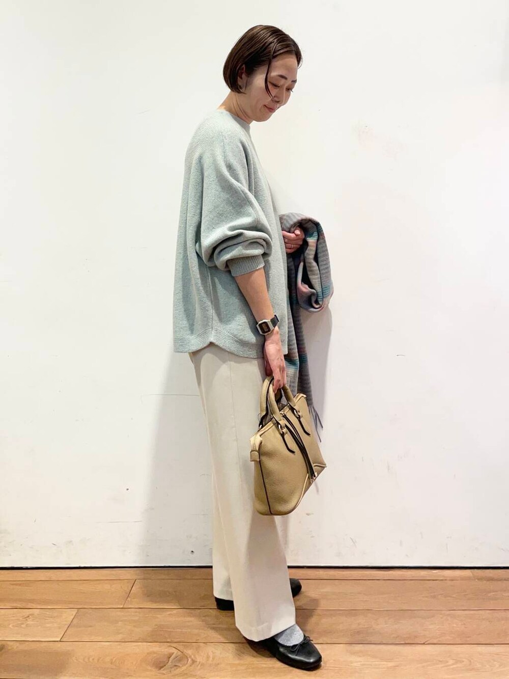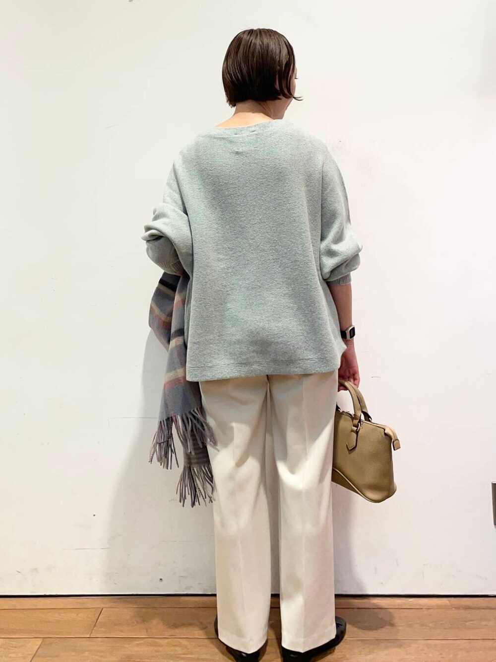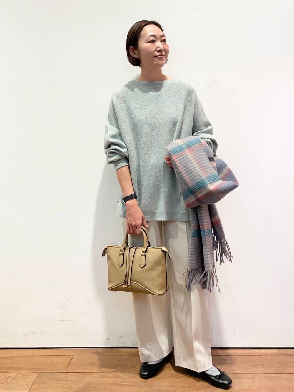 ハミルトンウールのニットもちょうどヒップまで隠れるくらいの丈感で、