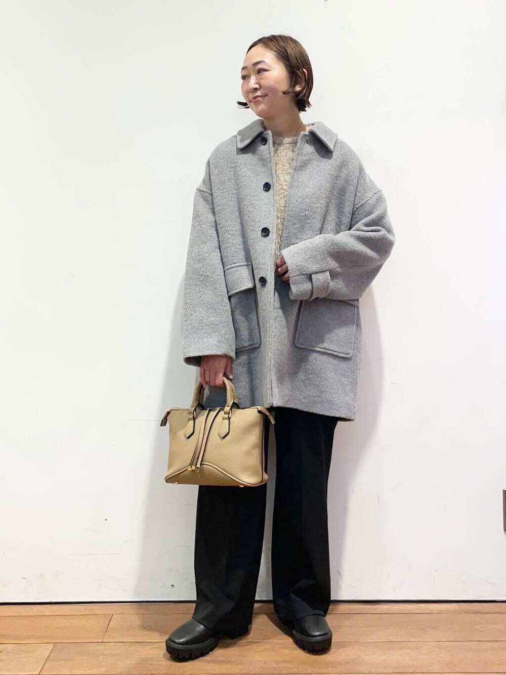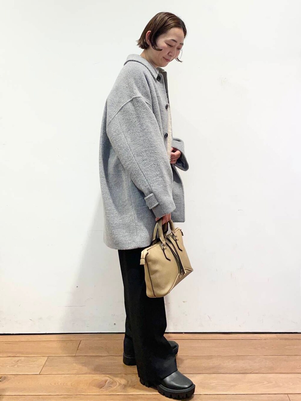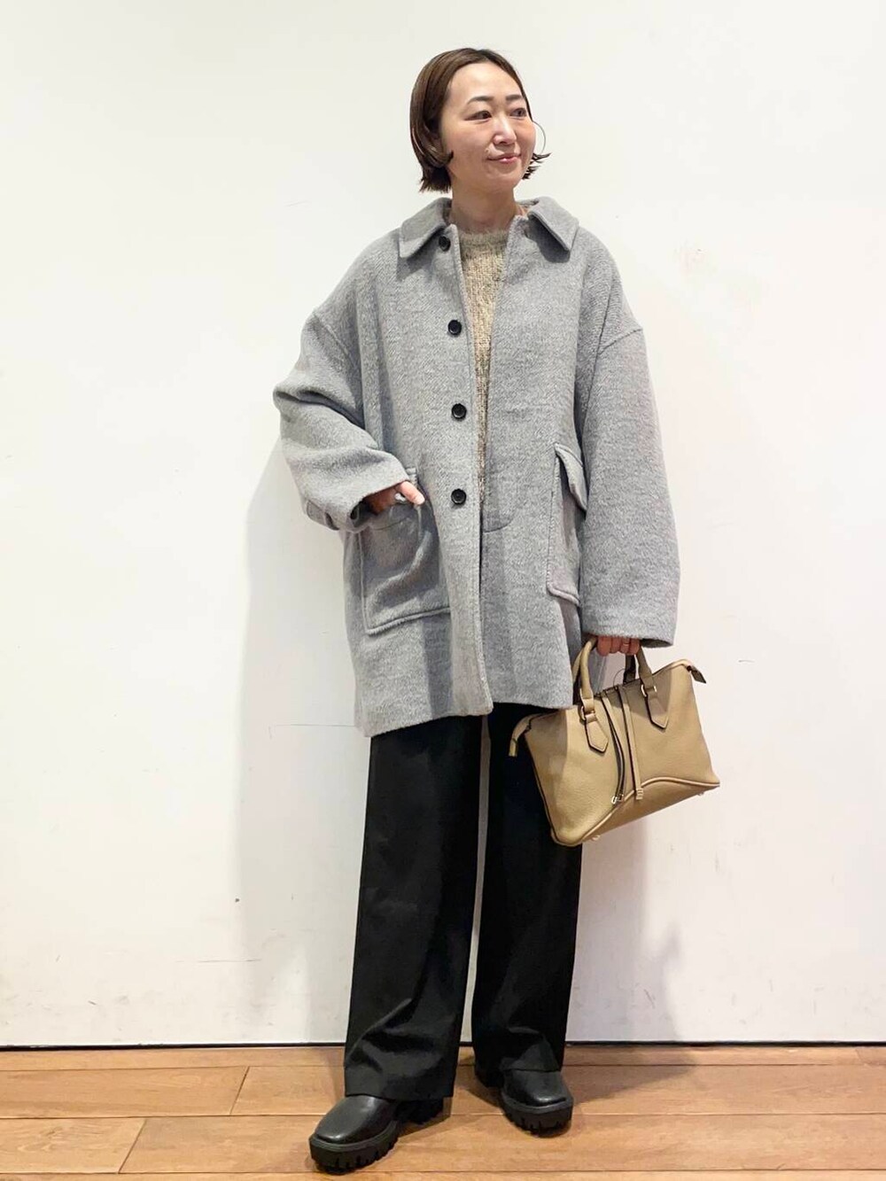 丈もスッキリしてるのでワイドパンツやスカートも相性良く合わせられます。
