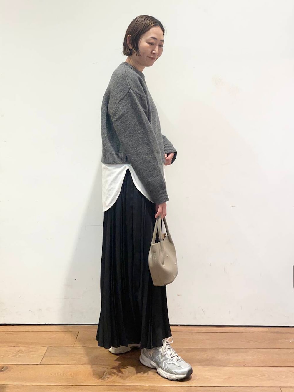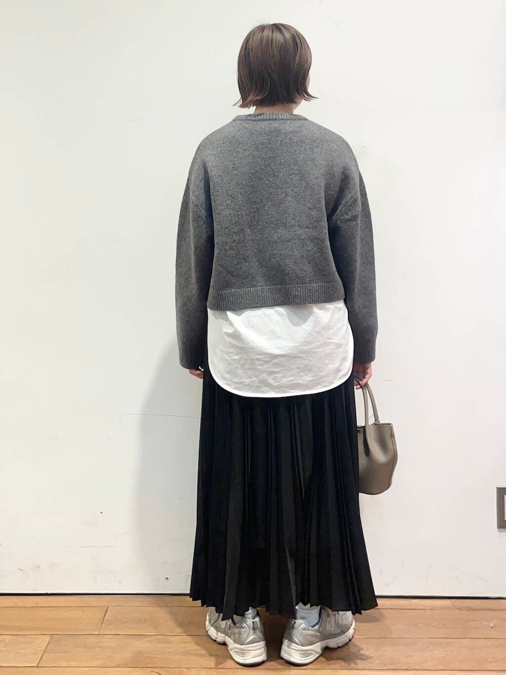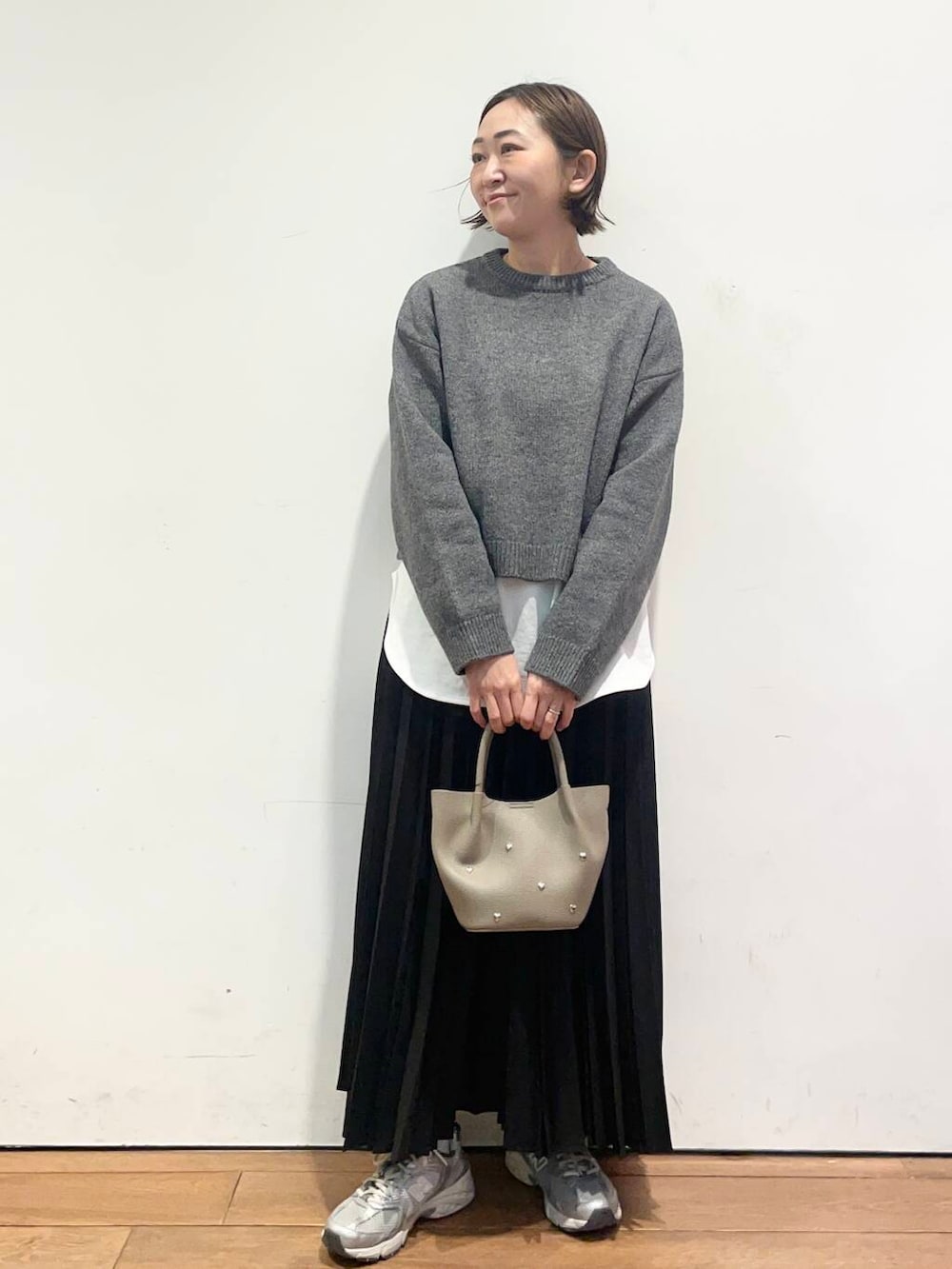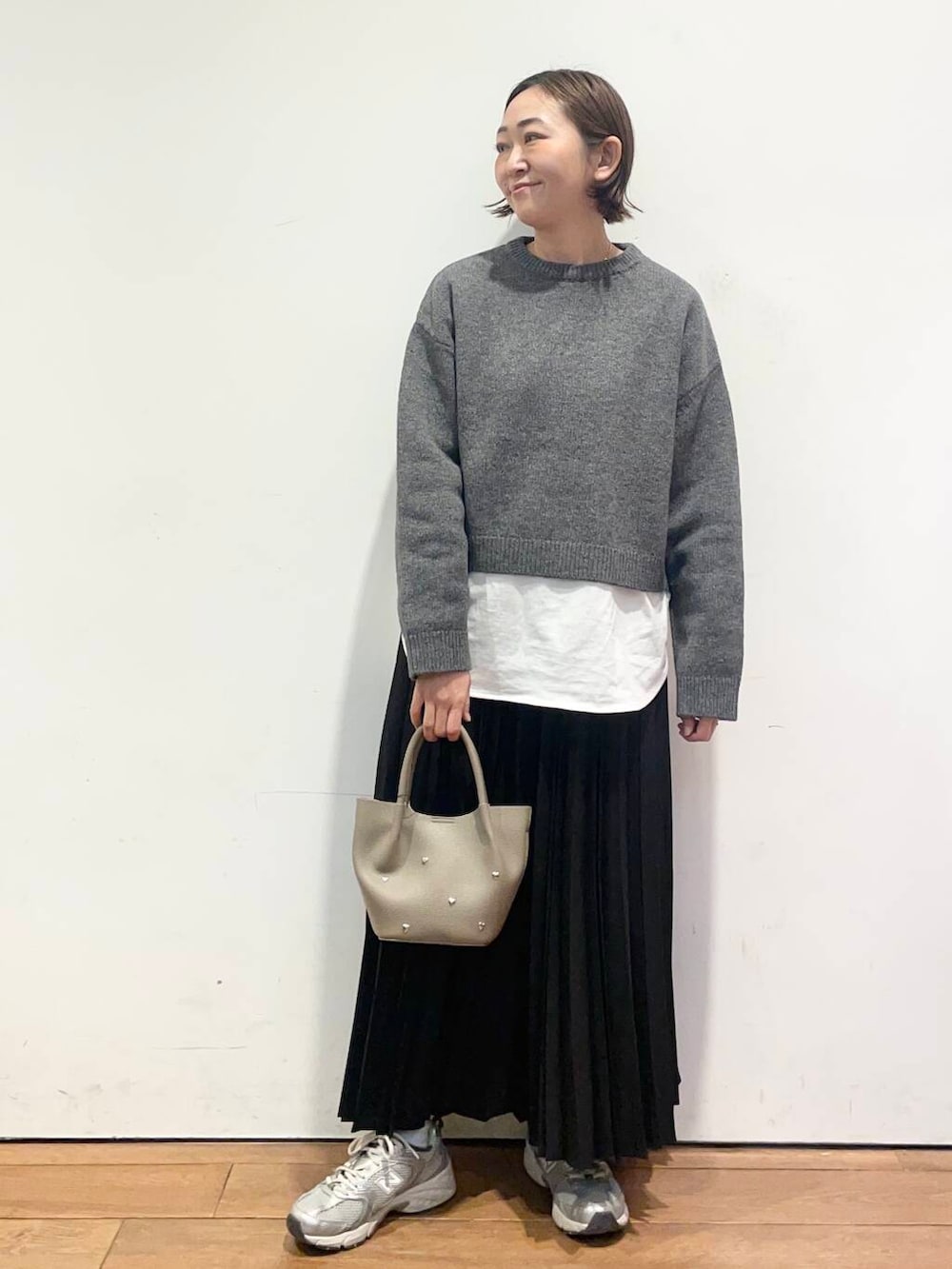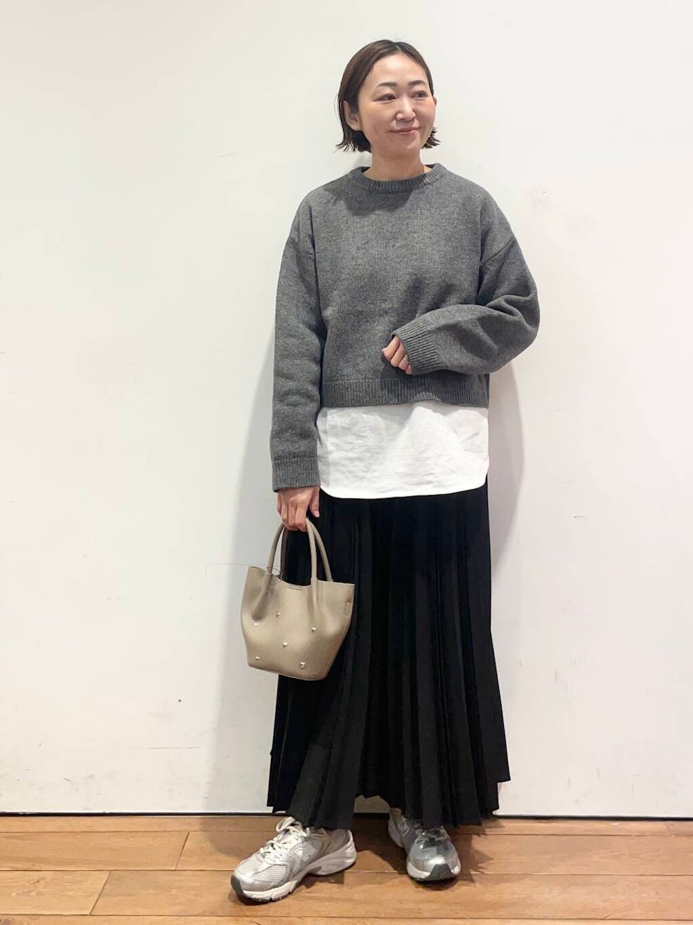 ニットはショート丈なので、レイヤードスタイルがおすすめです😌