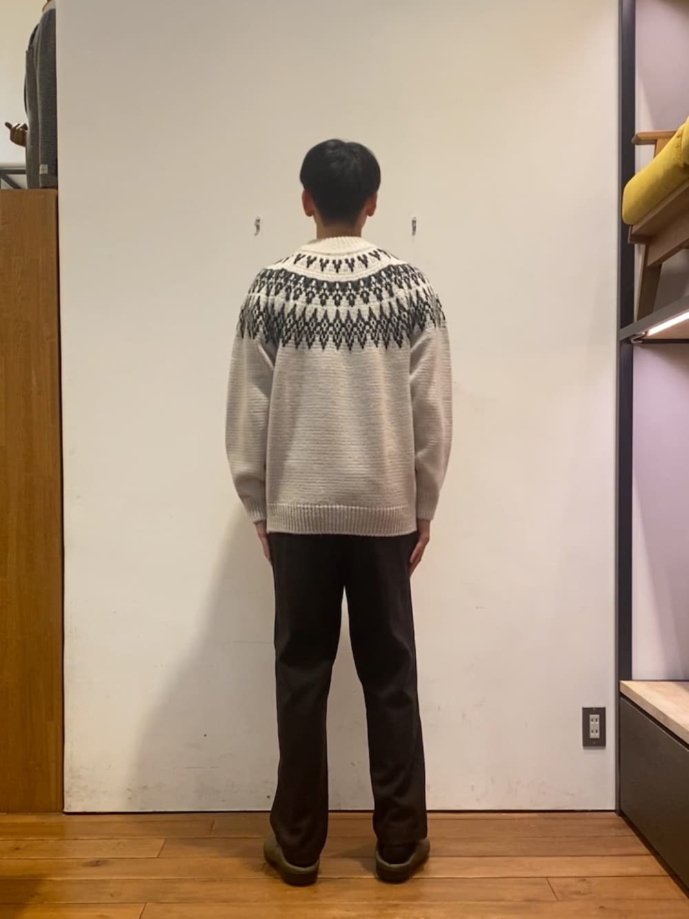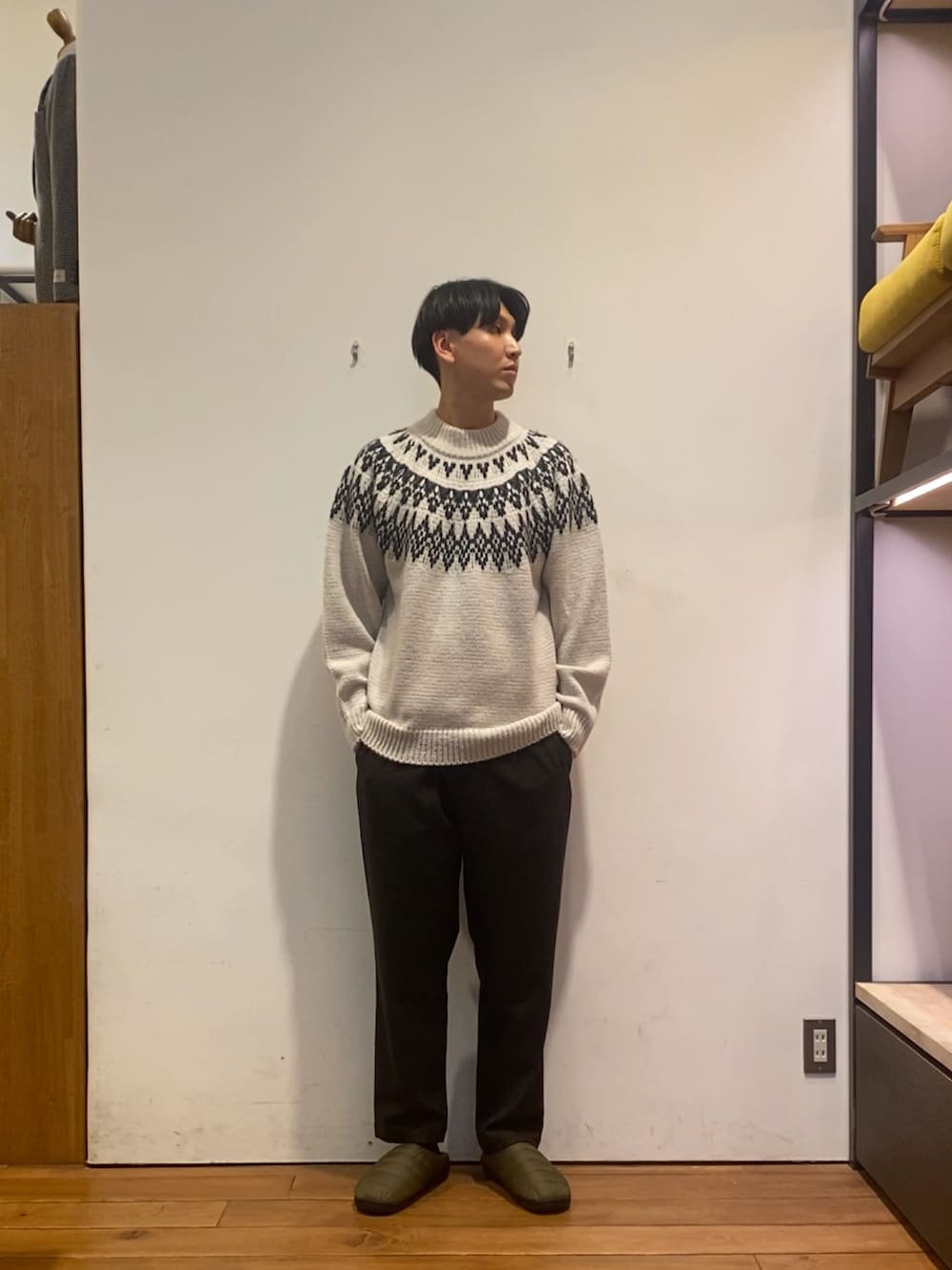 球心柄ニットと合わせてインナーを引き立たせるコーディネートを組んでみました!