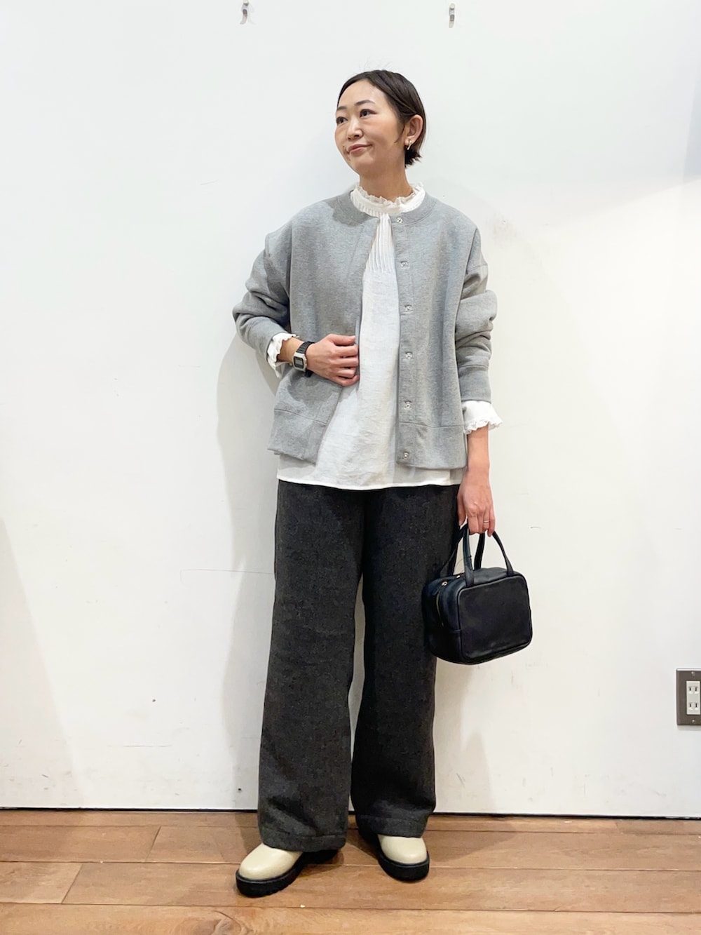 スウェットのカーディガンは裏起毛なのでとてもあったかいです☺️