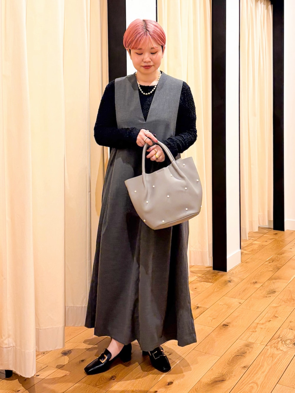 フォークのジャンスカはゆったりめなので、