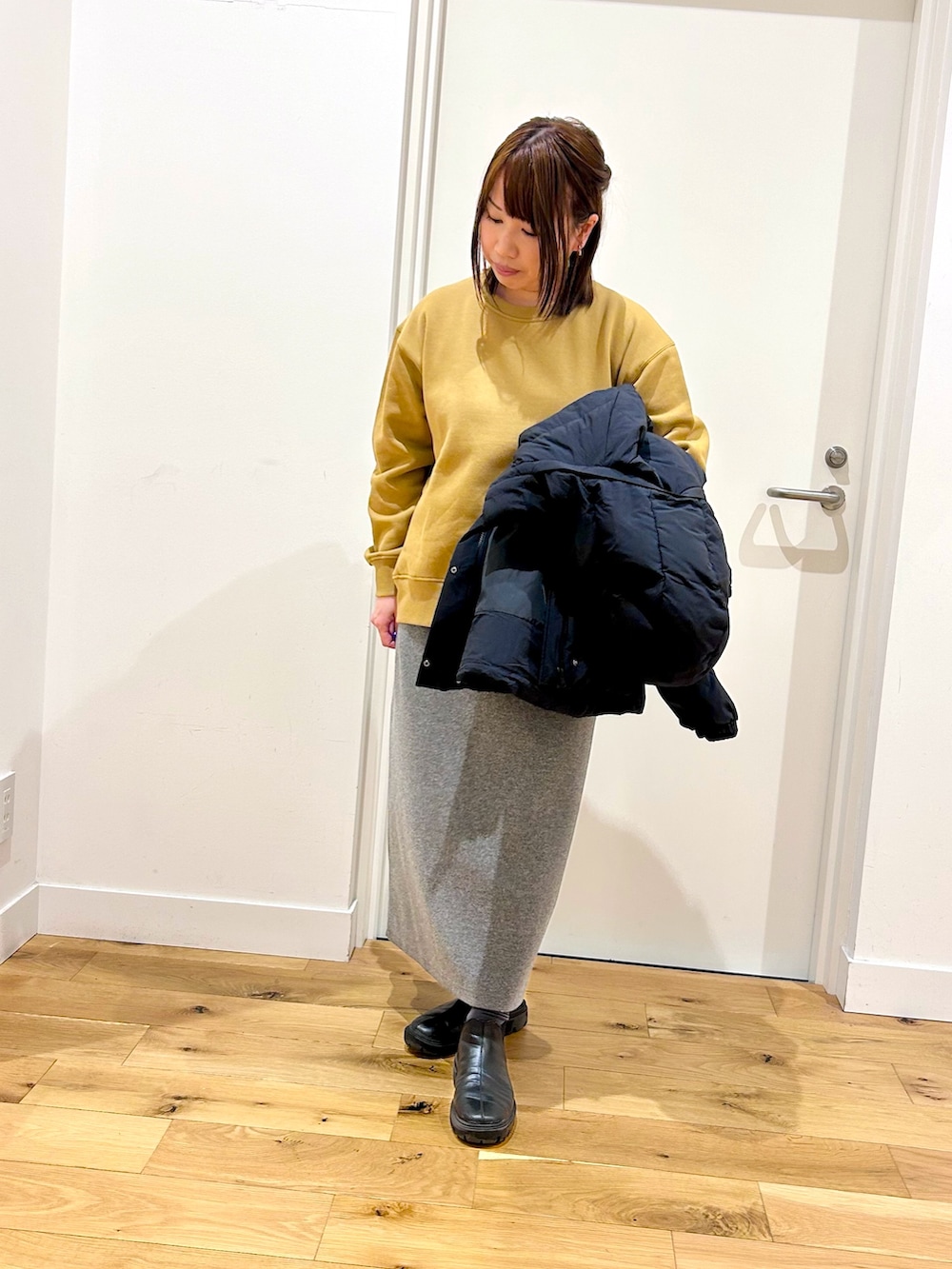 インナーの裏起毛サイド釦スウェットは保温力の高い機能素材で、こちらもしっかり暖かいです◎