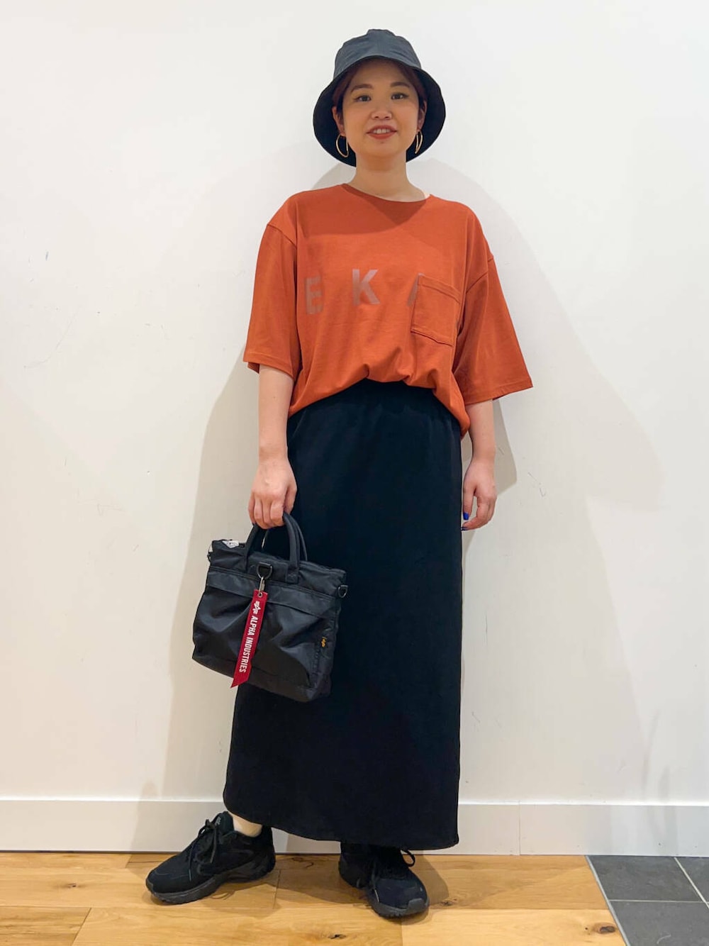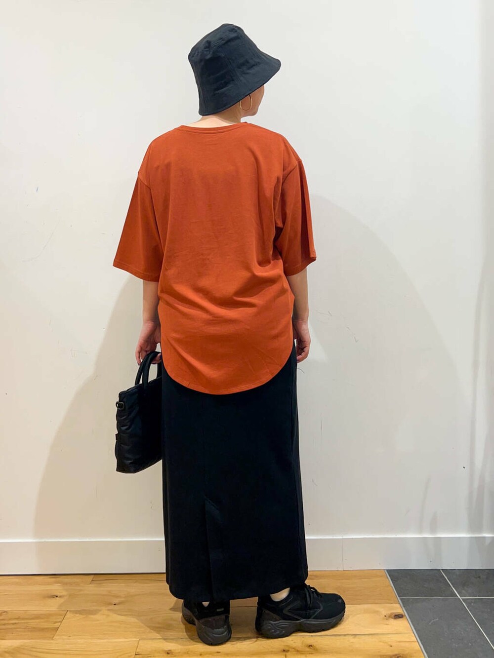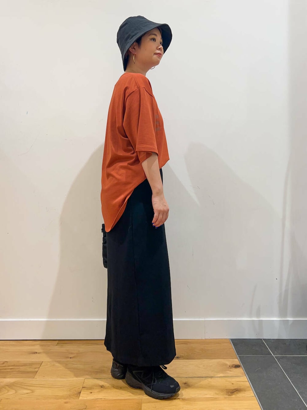 カジュアルすぎないセミタイトのスカートを合わせた