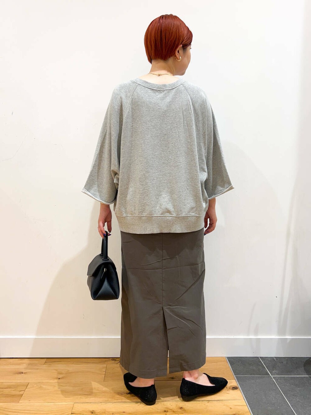 ゆったりトップスを合わせても