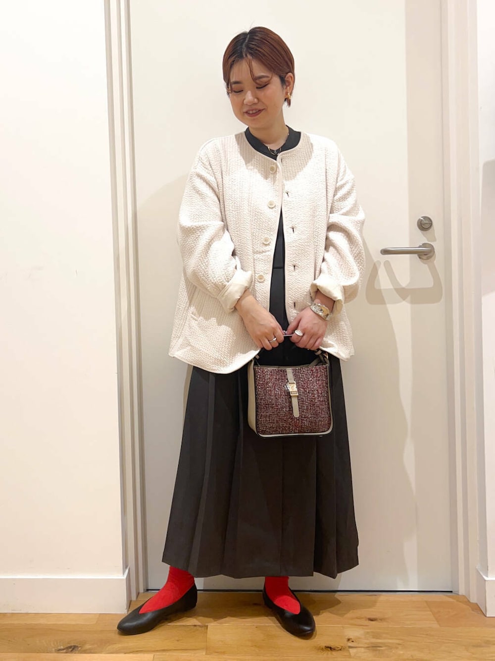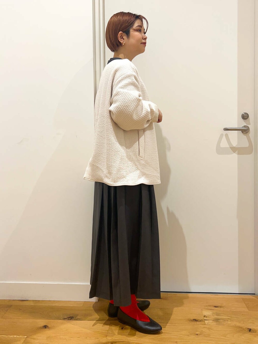 【サイズ別、サイドプリーツワンピースコーデ】