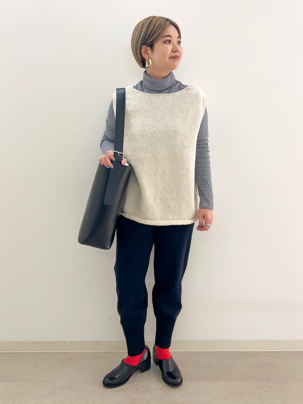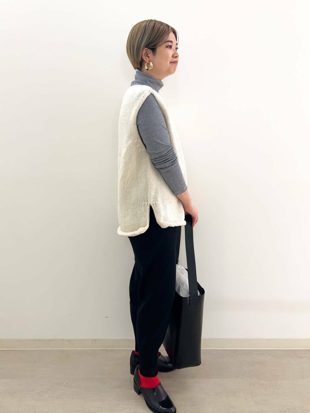 カジュアルダウンしすぎないスタイリングを意識しました。