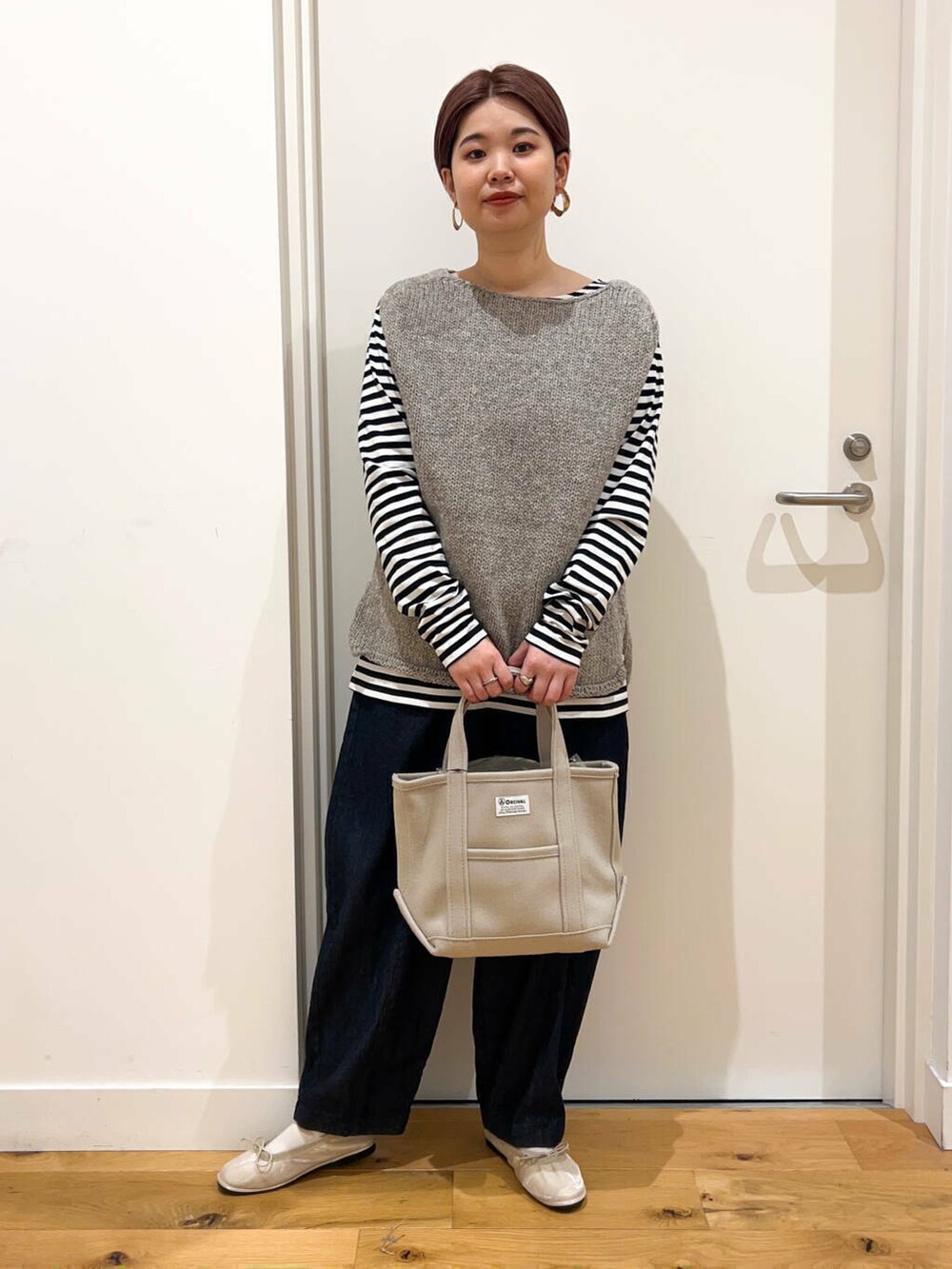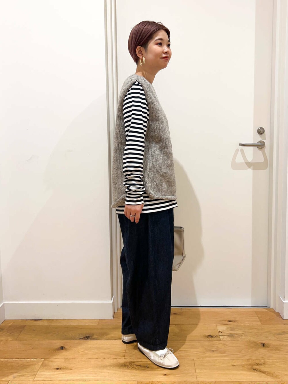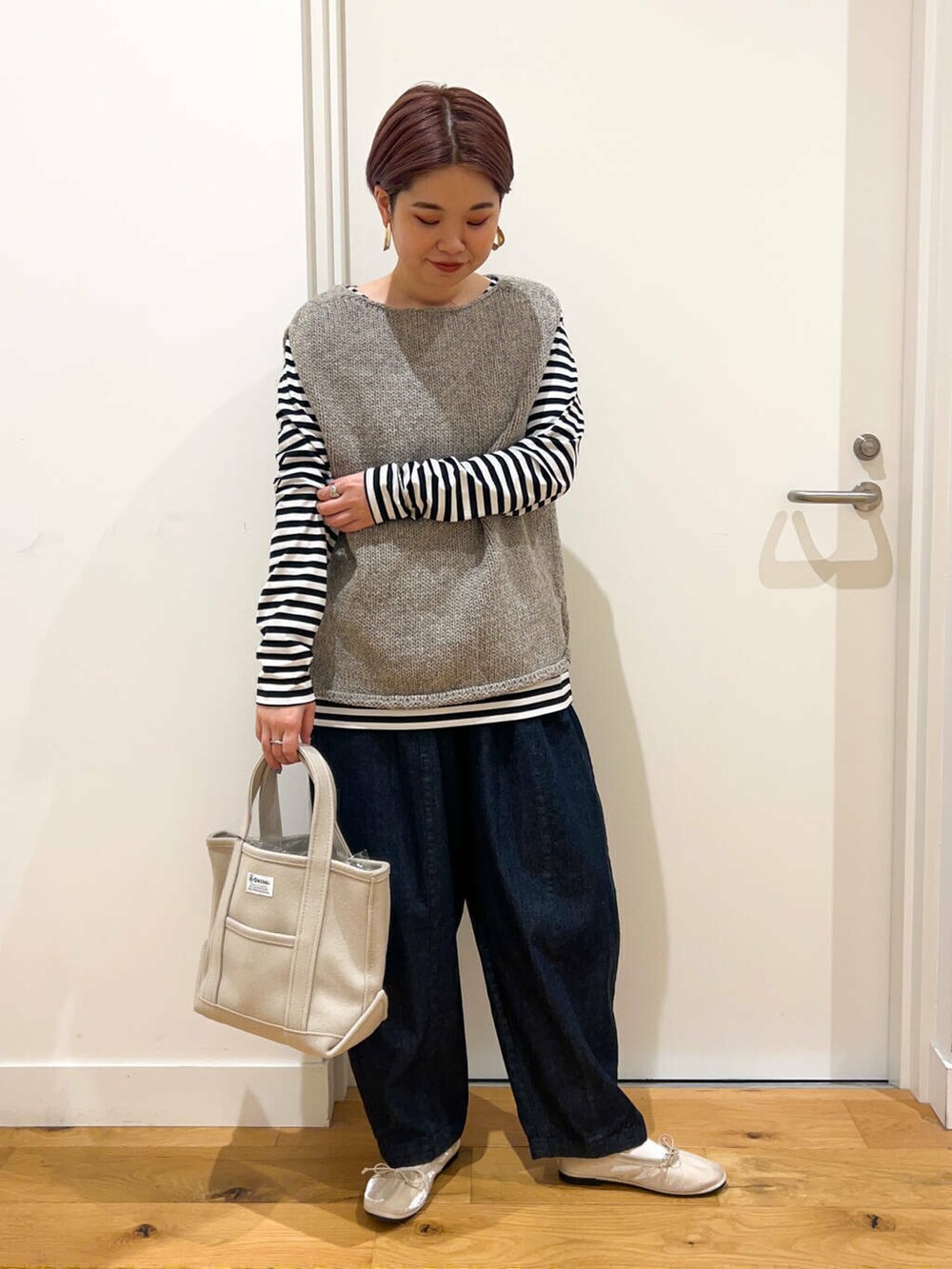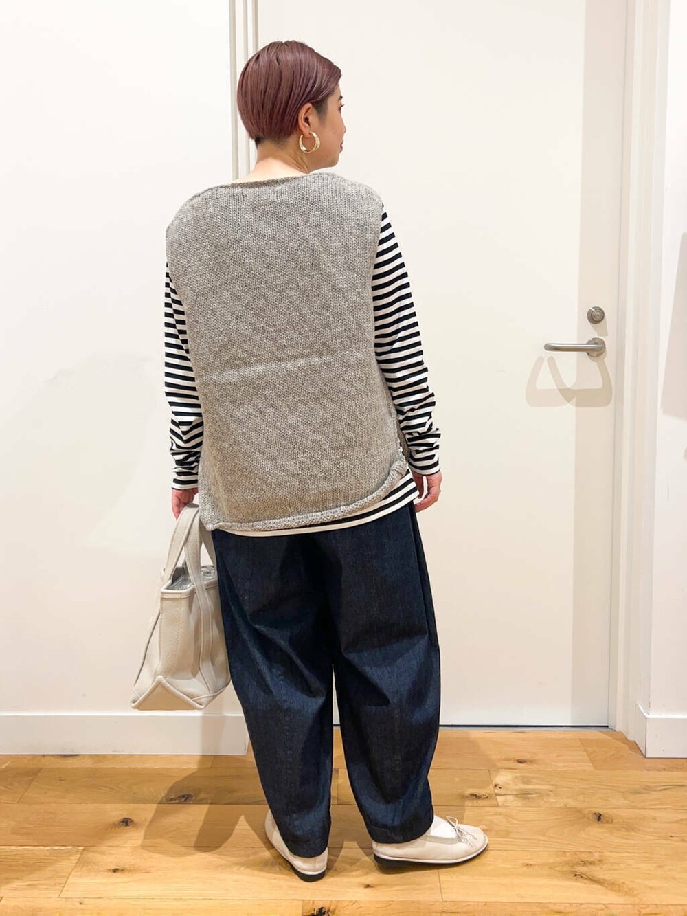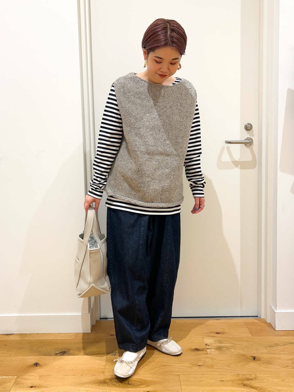 ベストを使ったシンプルボーダーコーデ。