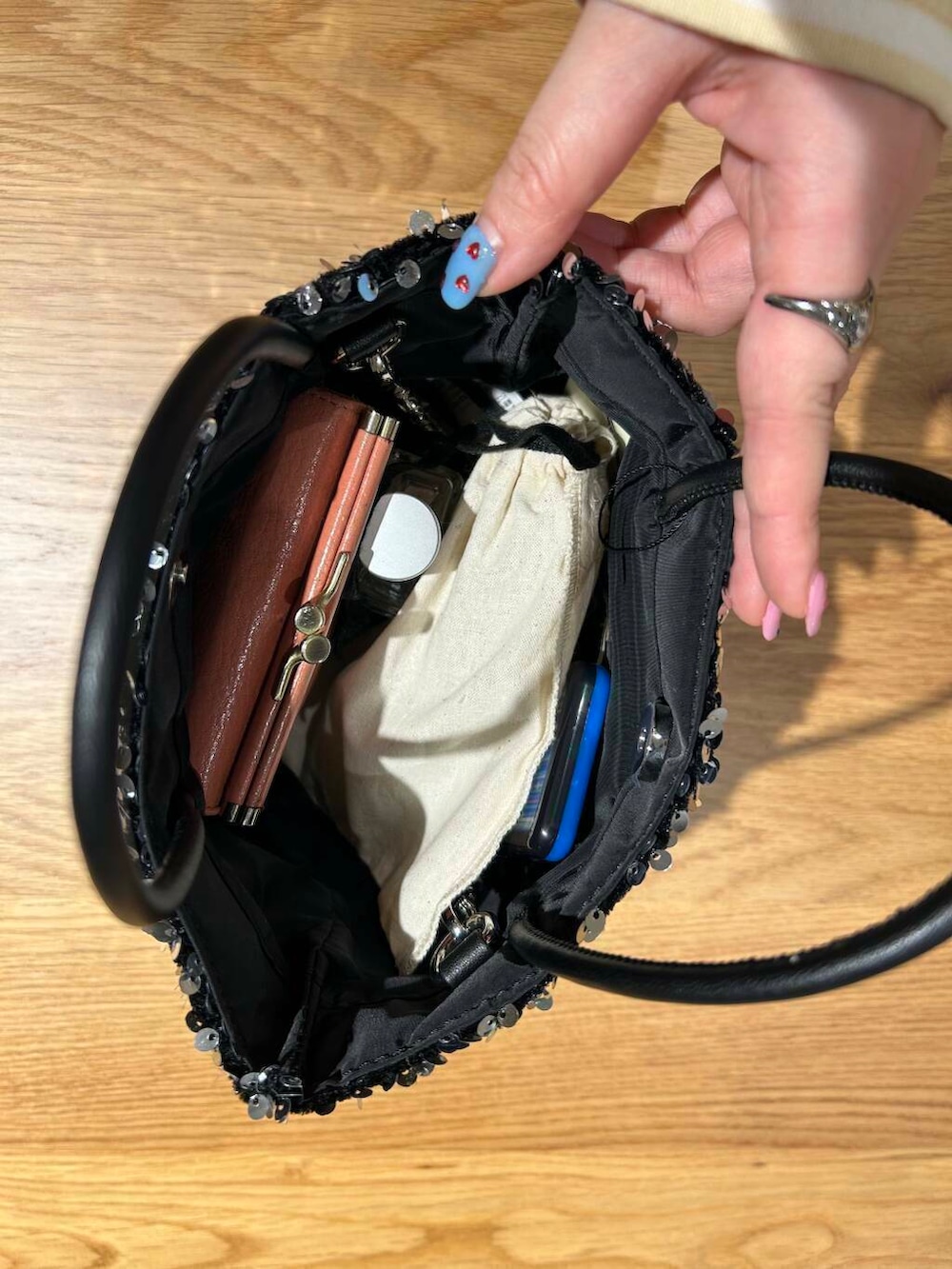 チェーンがついているので、手持ちと2WAYで使えて